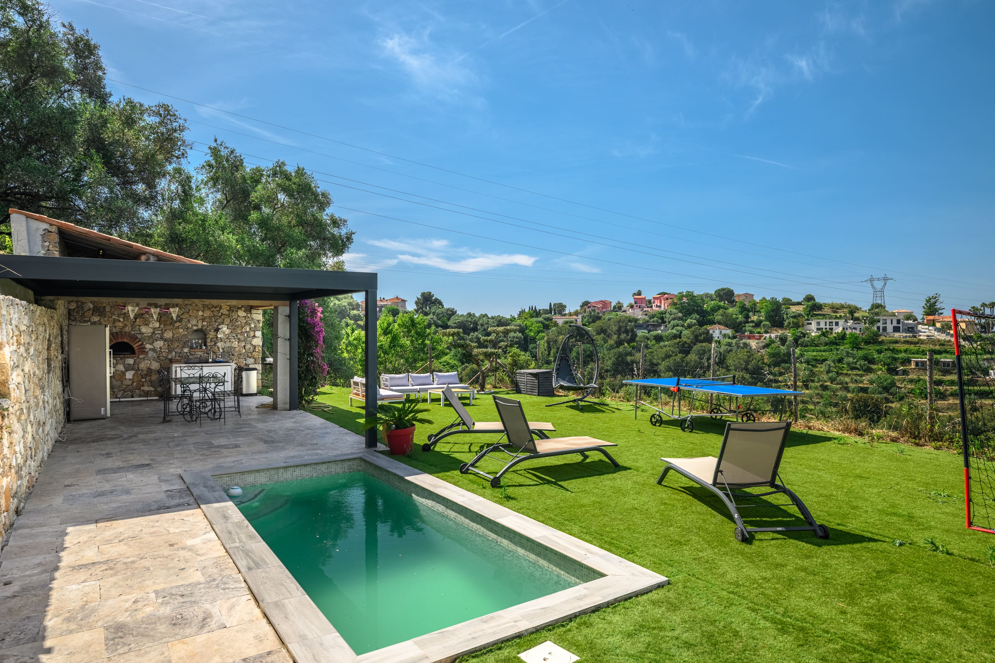 This villa is perfect for families and groups looking for a luxurious getaway. With ample space, family-friendly amenities, and proximity to local attractions, it offers a delightful base for exploring Nice. Children will enjoy the trampoline and ping pong table, ensuring entertainment for all ages.
