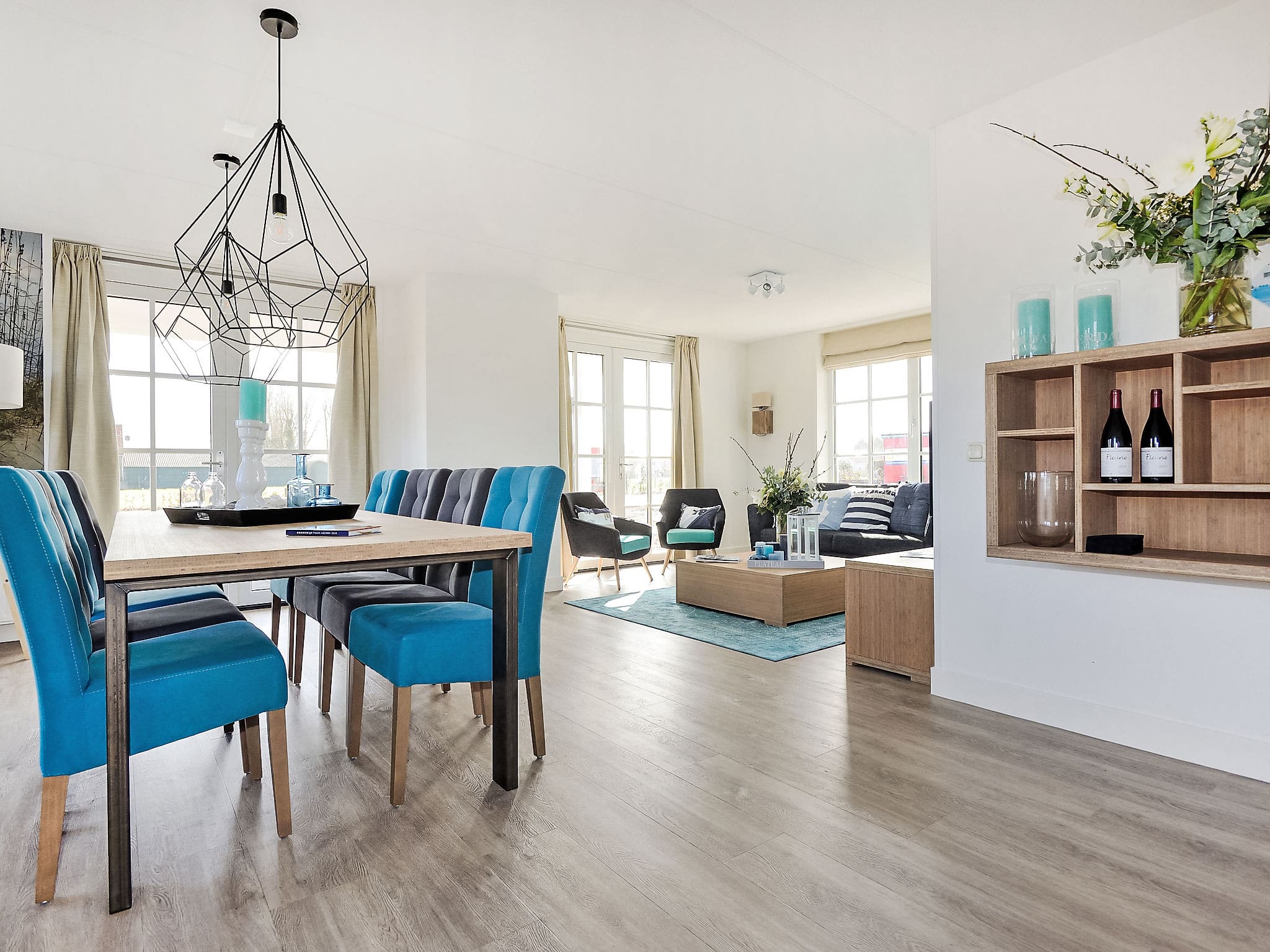 The villa’s outdoor spaces include a private terrace accessible from the main living area, perfect for morning coffee or evening drinks. The covered veranda extends the living space outdoors, providing shelter during changeable coastal weather. Private parking for two vehicles ensures convenience for exploring the wider region. The property sits within the peaceful de Witte Raaf resort, surrounded by mature trees, meadows and fields that create a tranquil atmosphere away from busy tourist areas.