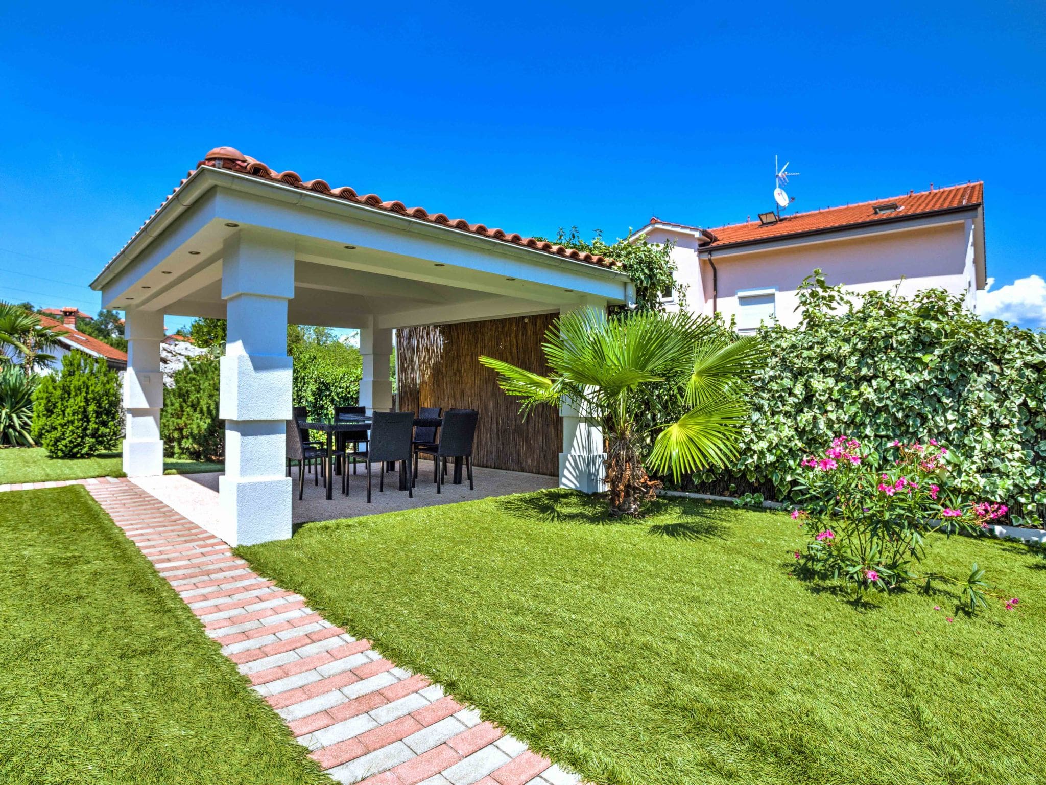 The villa’s 500-square-meter fenced grounds create a private oasis featuring manicured lawns and mature landscaping. The centerpiece is an angular swimming pool measuring eight by four meters, perfect for refreshing morning laps or lazy afternoon lounging. Pool season runs from May through October, coinciding perfectly with Croatia’s warmest months.