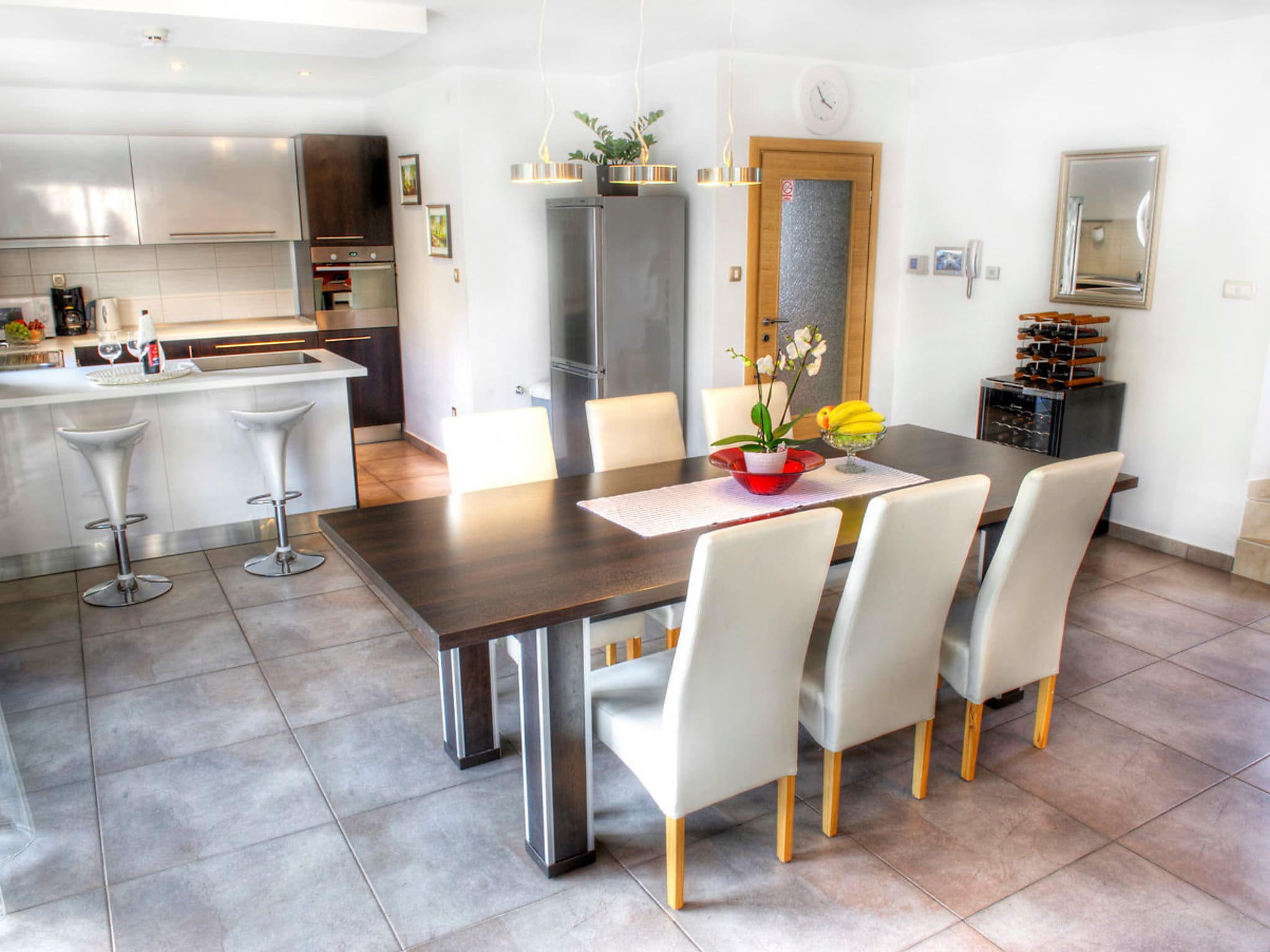 The open-plan kitchen showcases premium appliances including a ceramic glass cooktop, dishwasher, microwave, and professional-grade oven, making meal preparation a pleasure. Air conditioning throughout maintains perfect comfort during warm Croatian summers, while underfloor heating provides cozy warmth during cooler months.