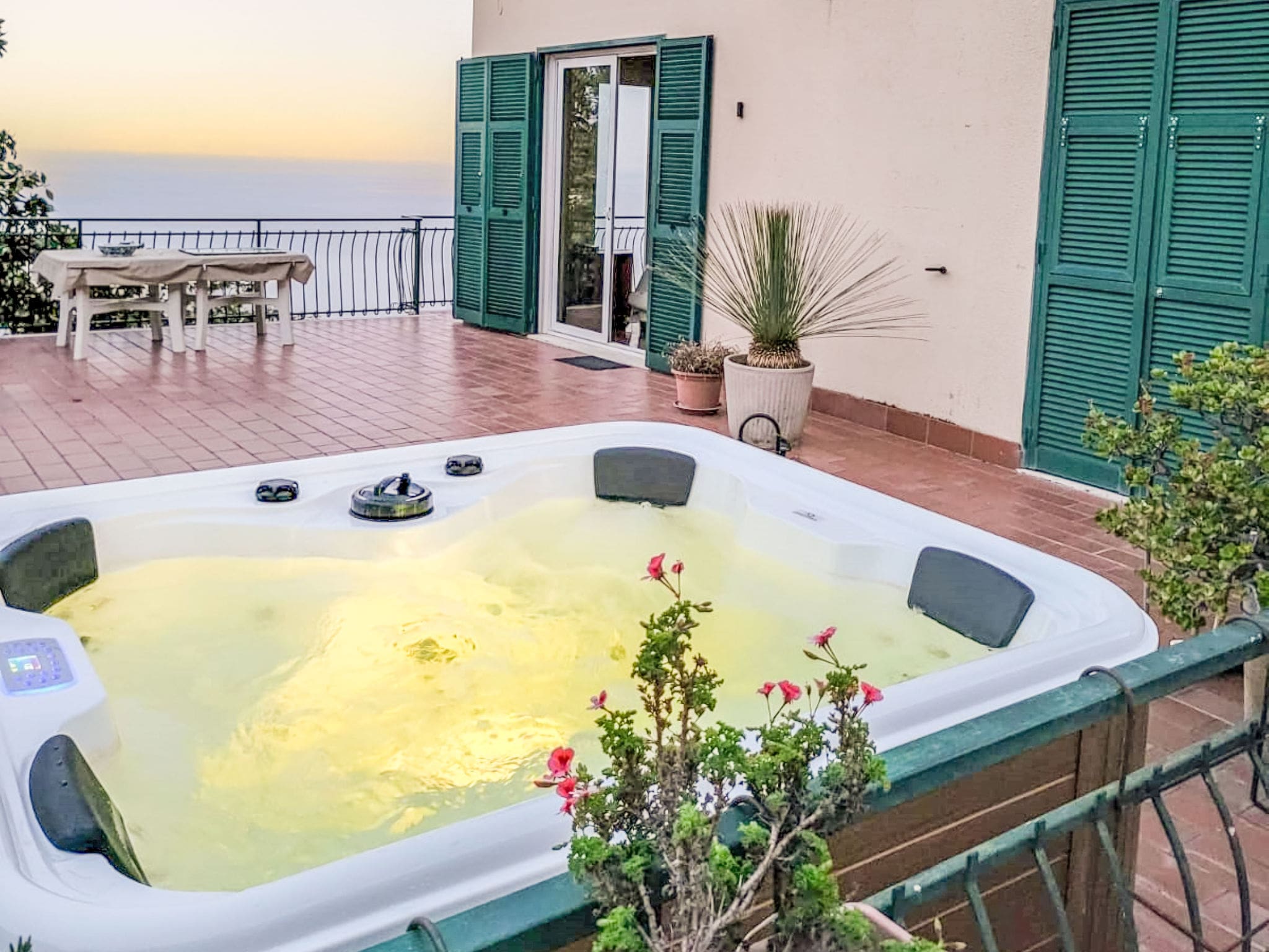 The villa’s outdoor spaces truly shine as the heart of Mediterranean living. The large terrace provides multiple areas for dining, lounging, and soaking up the spectacular sea views that stretch across the Riviera di Ponente. The private heated swimming pool, though compact at 1.8 metres diameter, offers year-round enjoyment and provides a refreshing escape during warmer months. Barbecue facilities on the terrace invite evening gatherings under the stars, while comfortable outdoor furniture creates the perfect setting for al fresco meals with the sparkling Mediterranean as your backdrop.