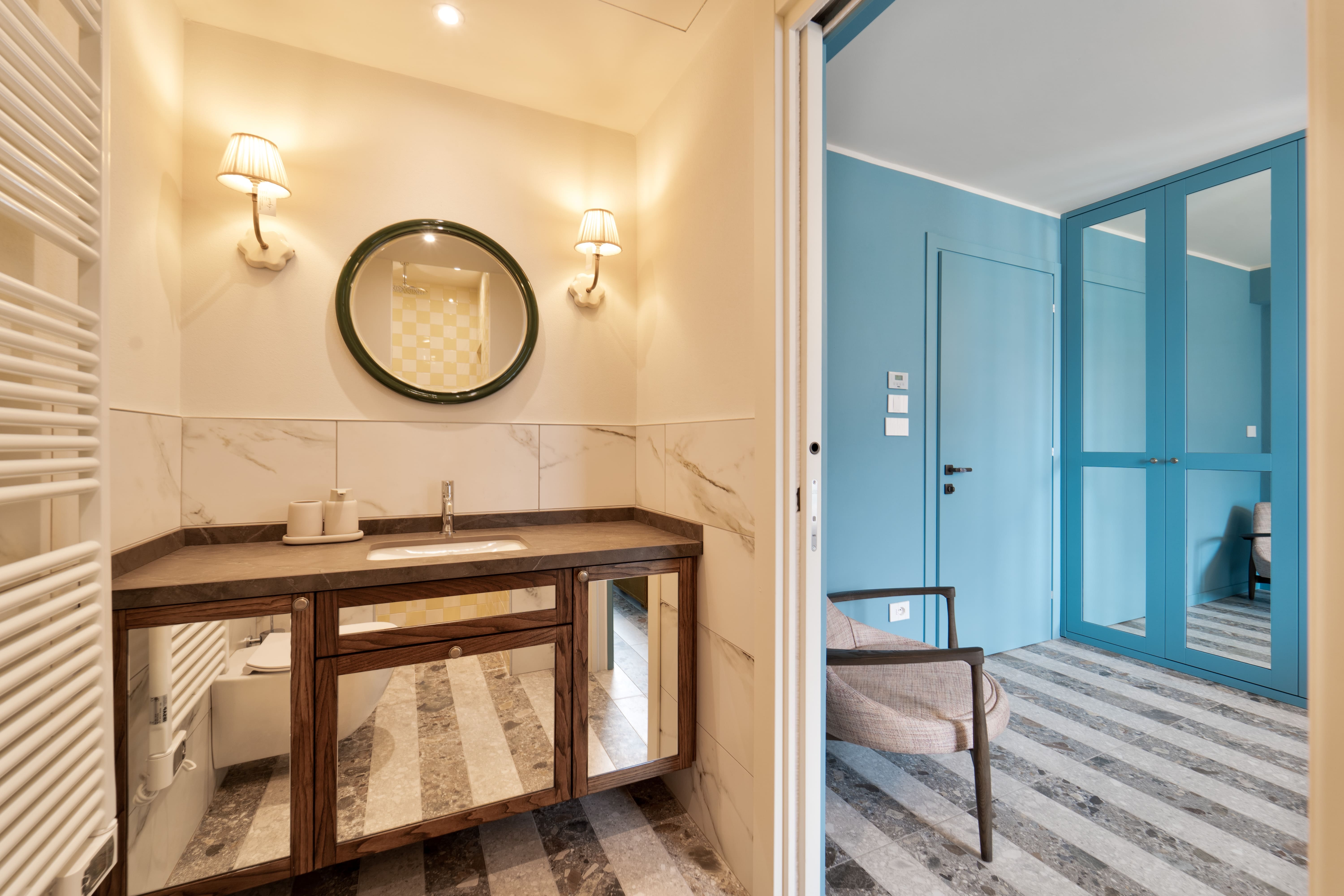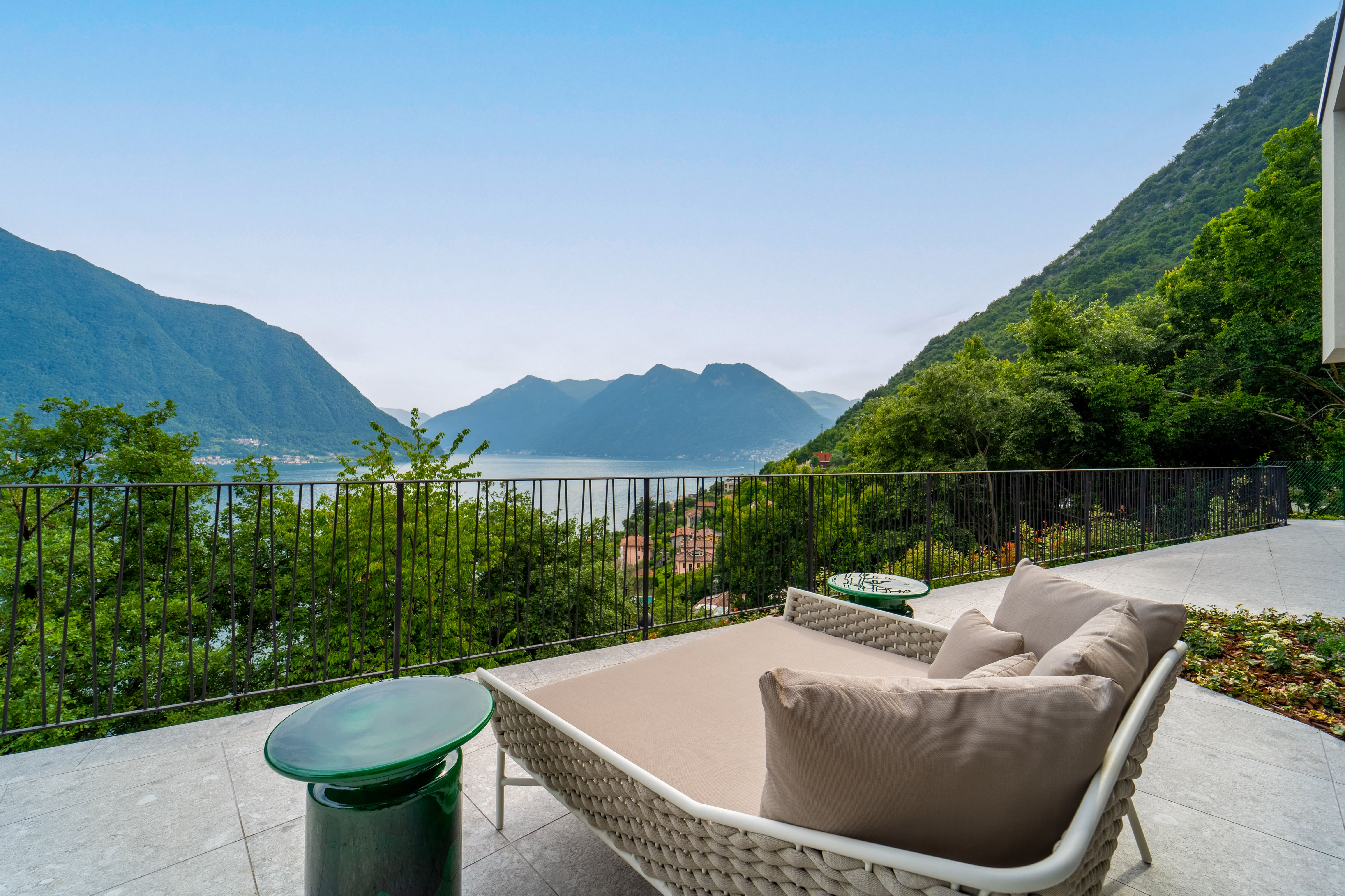 The outdoor area is a haven of tranquility, with an infinity pool that seems to merge seamlessly with the lake. The terrace offers ample space for sunbathing or al fresco dining, while the lush gardens provide a serene escape. From May to September, enjoy the pool’s refreshing waters against the backdrop of the picturesque Lake Como.