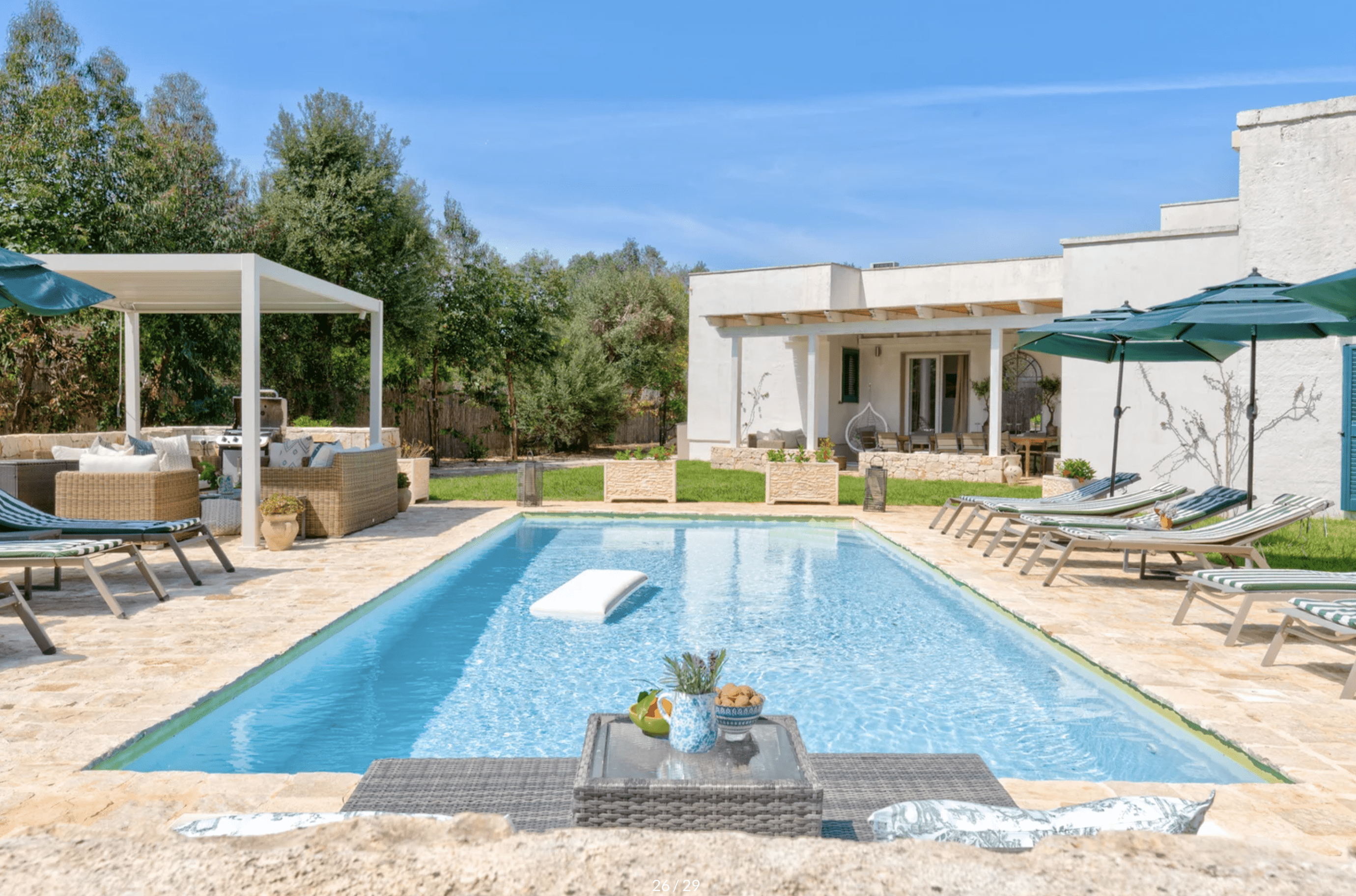 Experience an unforgettable escape at this luxury villa rental in Ostuni, where the charm of Apulian beauty meets modern luxury. Nestled amidst lush olive groves and aromatic citrus trees, this exquisite villa combines traditional Puglian architecture with contemporary elegance, offering a private paradise for families and groups seeking serenity and style.