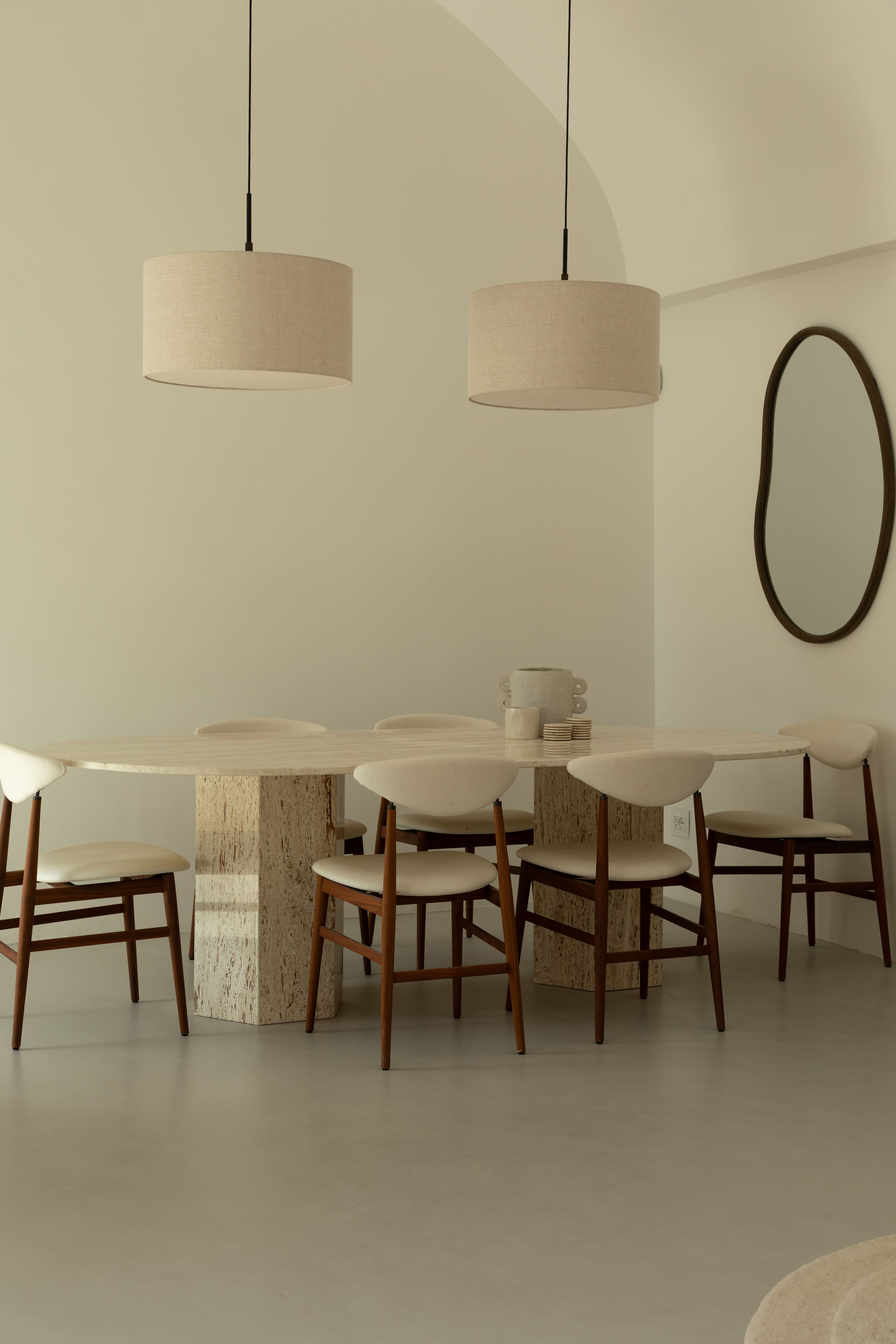 The villa’s interior harmoniously blends contemporary design with traditional elements, providing a welcoming sanctuary for up to eight guests. The open-plan living area, adorned with soft neutrals and natural textures, invites relaxation. The fully equipped kitchen is perfect for culinary adventures, while the elegant dining area ensures memorable meals with loved ones. The four bedrooms, including a private suite in a separate building, offer luxurious comfort and tranquility. The three bathrooms maintain a consistent style, ensuring a seamless living experience.