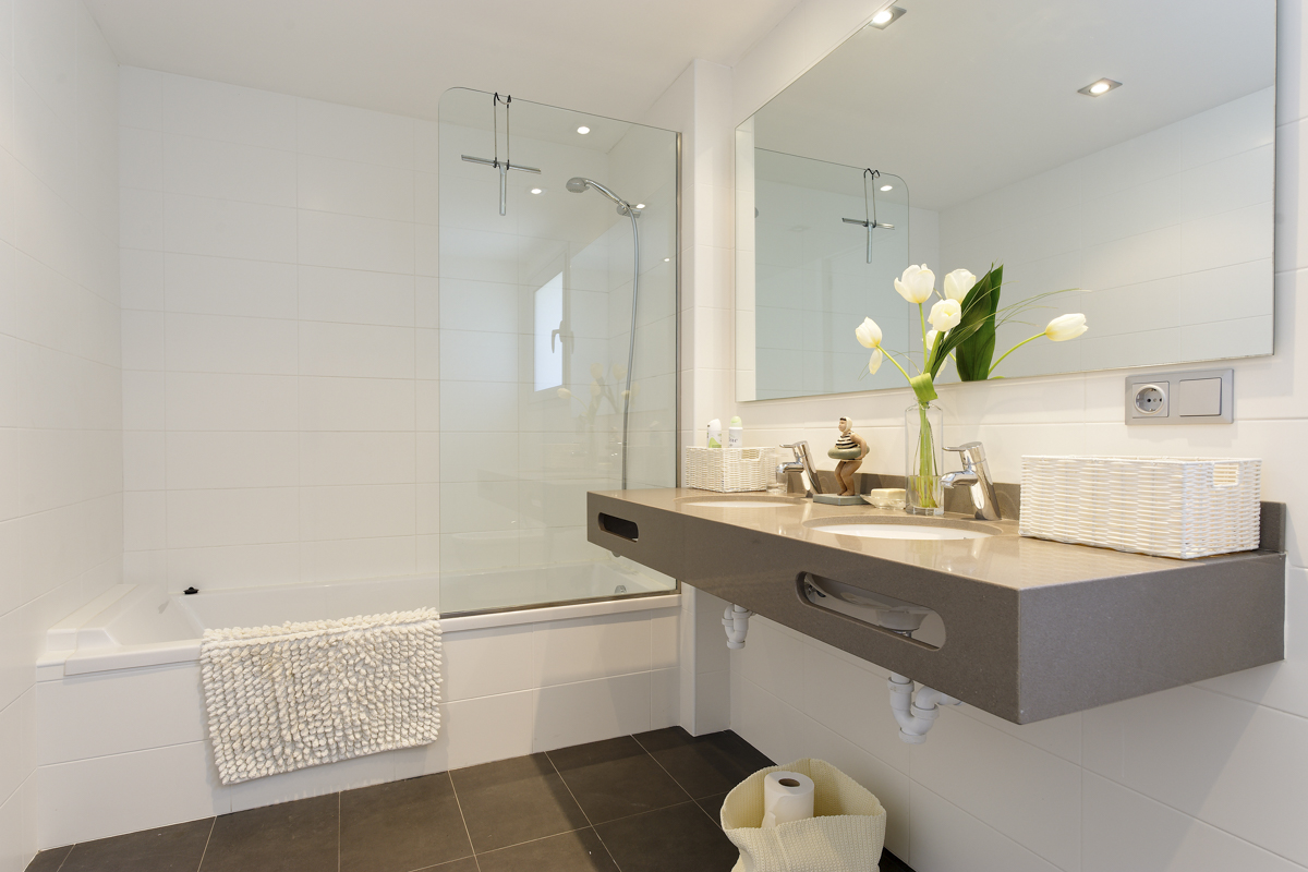 Take time to relax in the modern, yet cosy living area, but don’t worry about missing out. This sociable, open-plan style of living means the kitchen and dining area are within your sight. And what a sight! The glossy kitchen, with its obligatory island, overlooks the dining spaces inside and out, and the considerable glass doors let in lots of natural light. Heavenly!