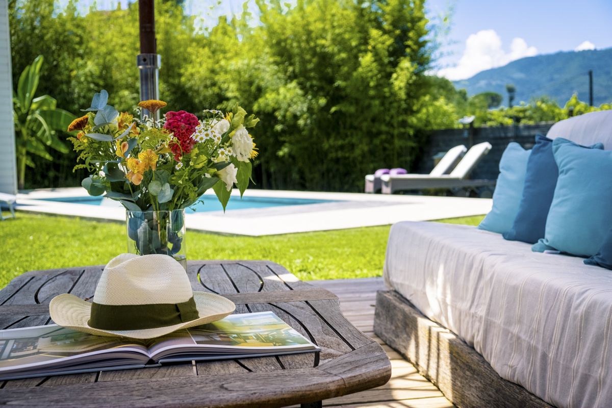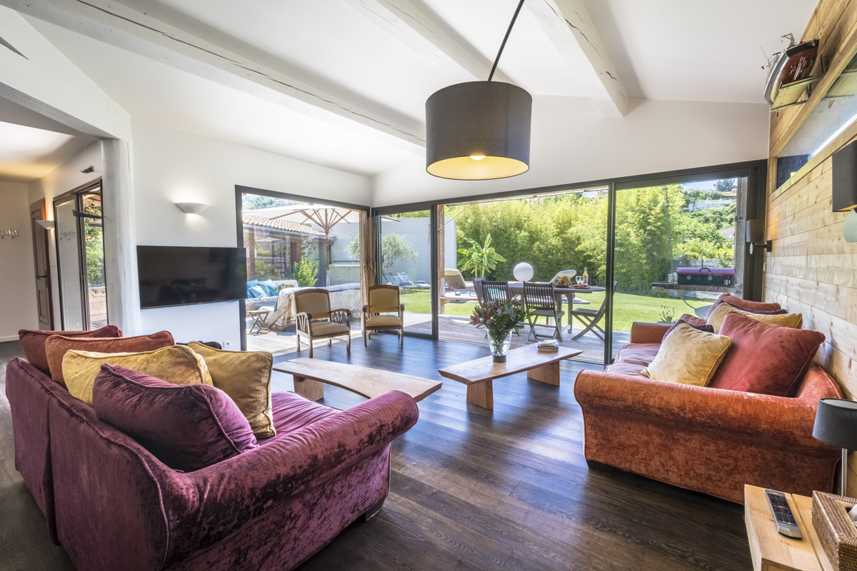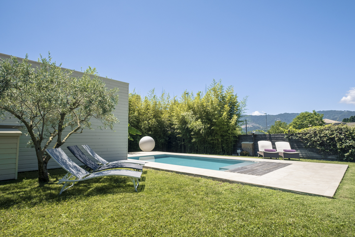 The swimming pool is ideal for cooling off in the southern French sunshine and a plancha-style barbecue will make dining al-fresco a joy. You can even peek out towards the beautiful hilly landscapes as you relax in your verdant garden with its lounge and sun-beds.