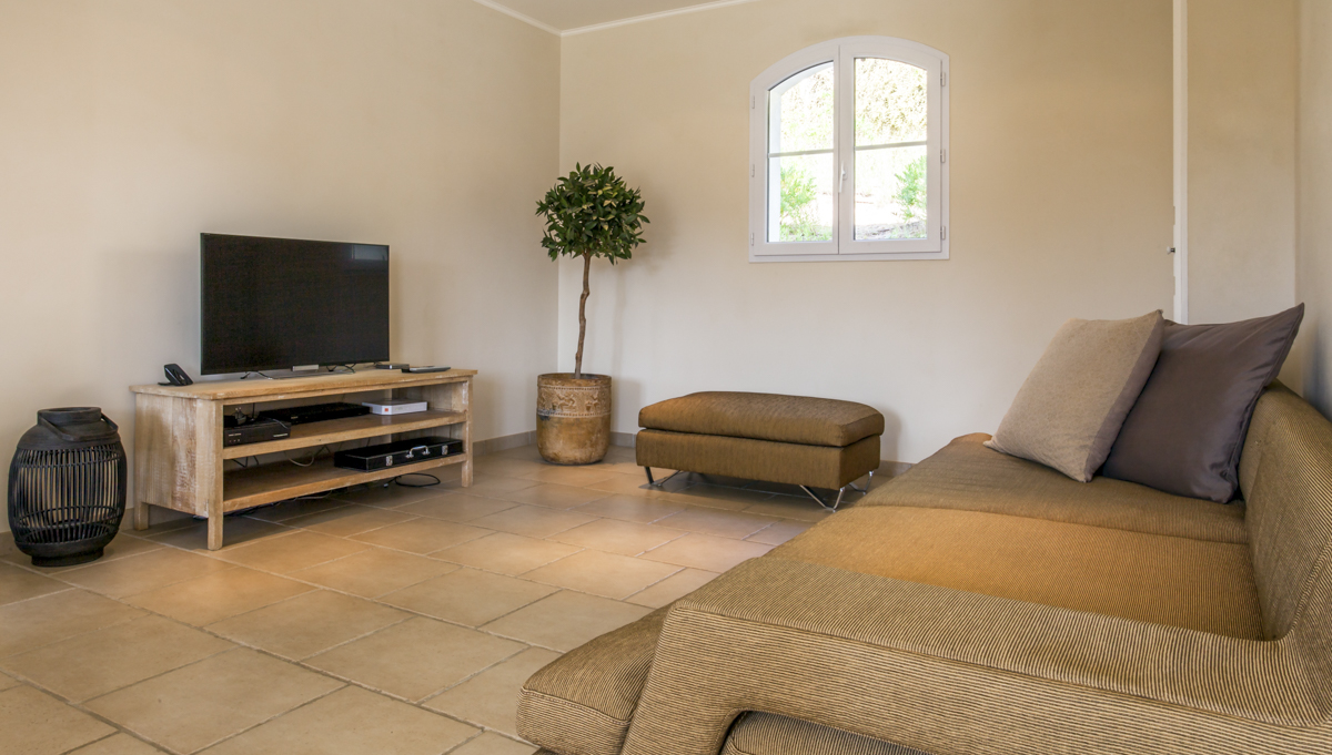 Open up the pretty shuttered French windows and be greeted with beautiful views of hills and woodland. The spacious living and dining room opens up to the large terrace with its outdoor lounge and Mediterranean gardens. Enjoy leisurely meals as kids play on the trampoline and swing or let their imaginations run wild by the little treehouse. The inviting swimming pool is also perfect for splashing around or simply soak up the summer sun on one of the poolside loungers, surrounded by olive trees and towering pines.