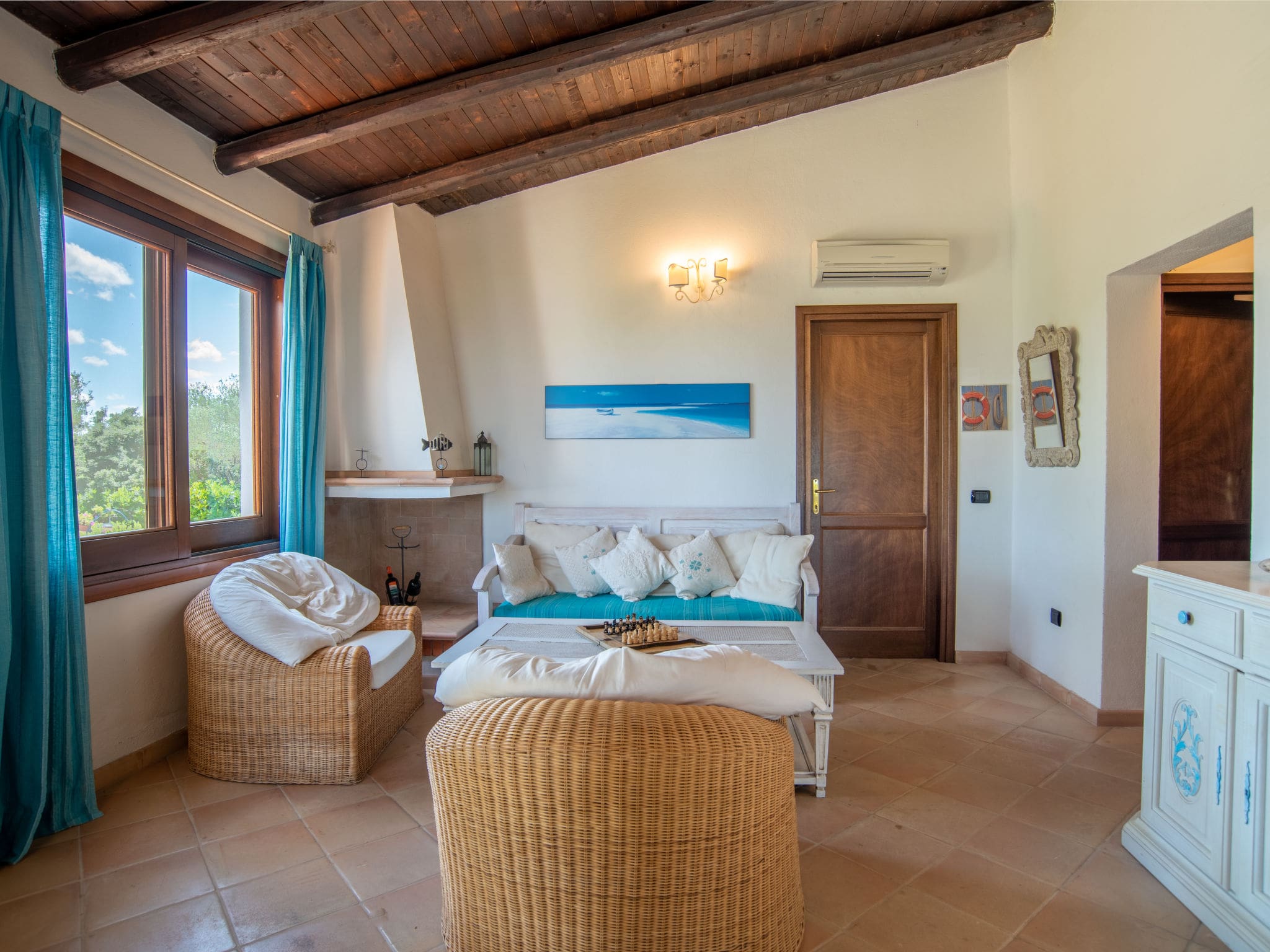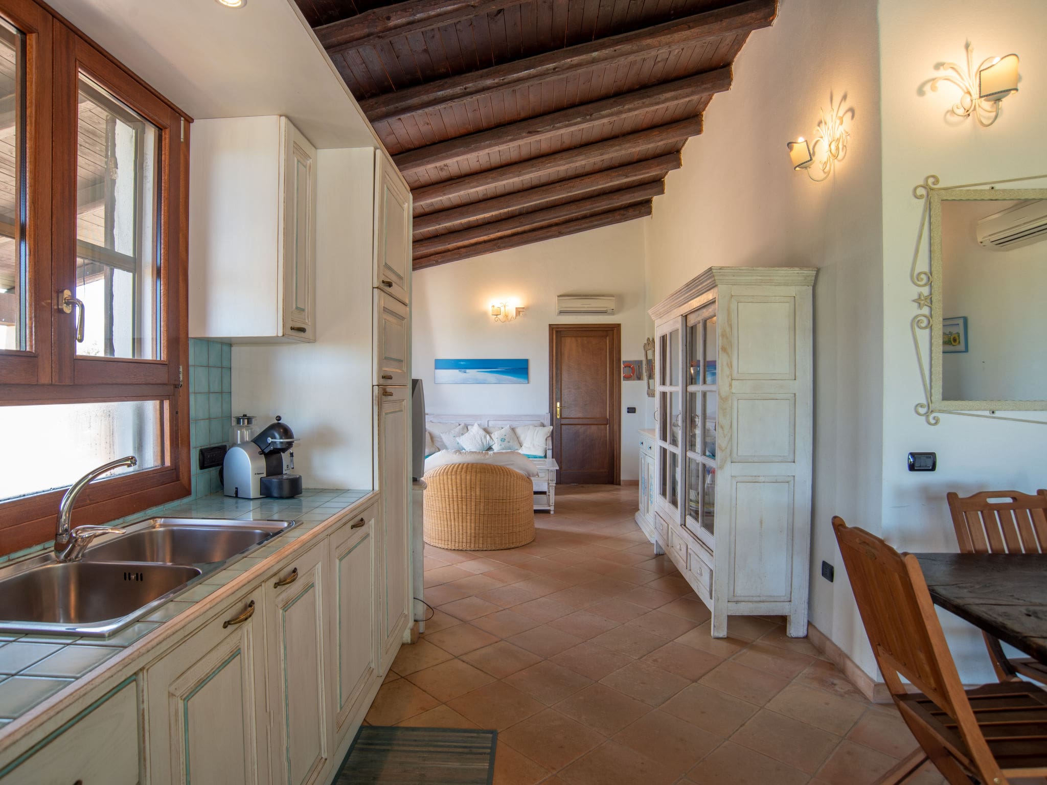 Spread across a single level of 120 square metres, this comfortable villa provides seamless indoor-outdoor living with panoramic vistas of both the sparkling Mediterranean Sea and the rolling Sardinian countryside. The thoughtfully designed layout includes a welcoming living and dining area with direct terrace access, creating an effortless flow between interior comfort and outdoor relaxation. Three well-appointed double bedrooms accommodate up to six guests, while two full bathrooms with showers, bidets and modern fittings ensure convenience for families and groups.