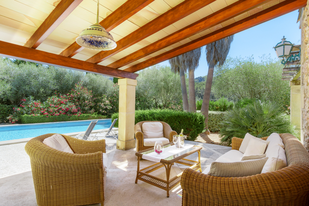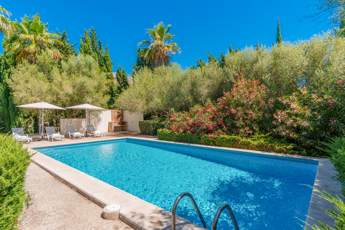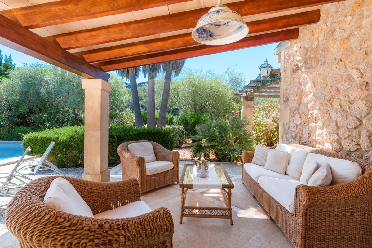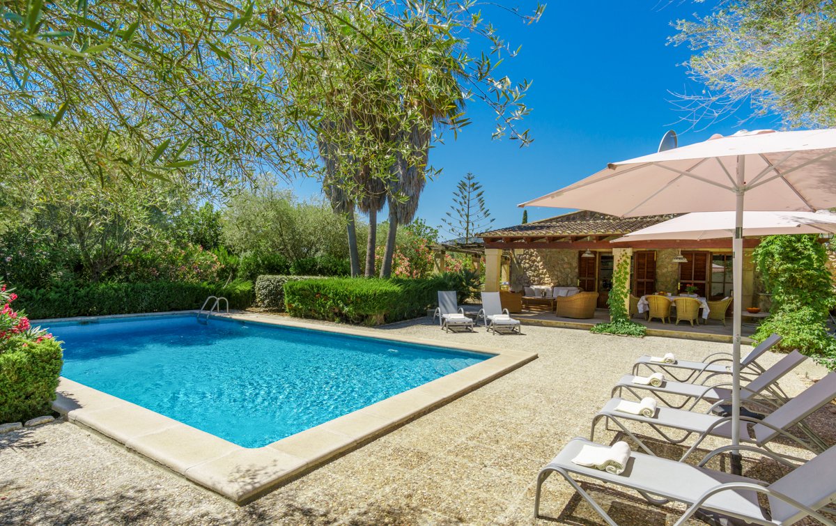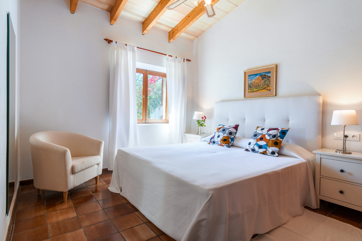 Located on a plot of 70,000m² of land, this vast, beautiful three-bedroom villa is enveloped in nature and has everything you could need for a restful, reinvigorating stay in the Mallorcan countryside. Set 350m back off the road, you’ll feel utterly secluded and far more remote than you truly are as you approach the property.