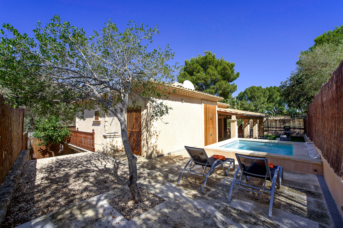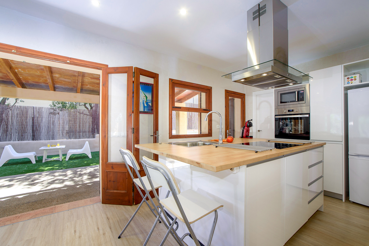 Orell Planas is perfectly sized for a smaller group, accommodating up to six guests. From the terrace, double doors lead into the living area with plenty of comfortable seating, satellite TV, music system and free Wi-Fi. A well-equipped kitchen has an electric oven, microwave, fridge freezer, dishwasher and much more besides, and is complemented by an open-plan dining area leading you back out to the pool and gardens.
