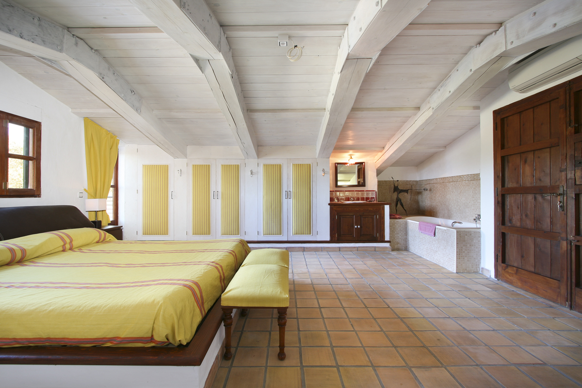 The property is spacious throughout, with high ceilings and traditional features offering a grandeur to the villa. With six bedrooms spread over two floors there is plenty of room to spread out. On the ground floor you will find the entrance hall and an open plan living/dining area, as well as the kitchen. These spaces are perfect for socialising as a group whilst catching glimpses of the beautiful outdoors through the windows. There are two twin bedrooms and one double on the ground floor, all with en-suite bathrooms. As you head up to the first floor, there is a further large, en-suite double bedroom, as well as two twin bedrooms in the loft. The loft rooms are better suited to younger children as there is limited head room.