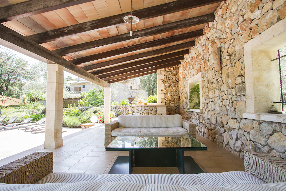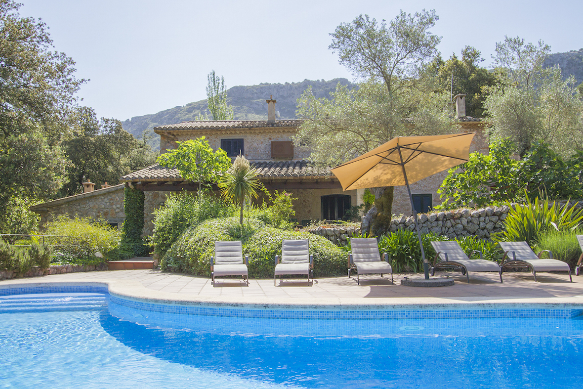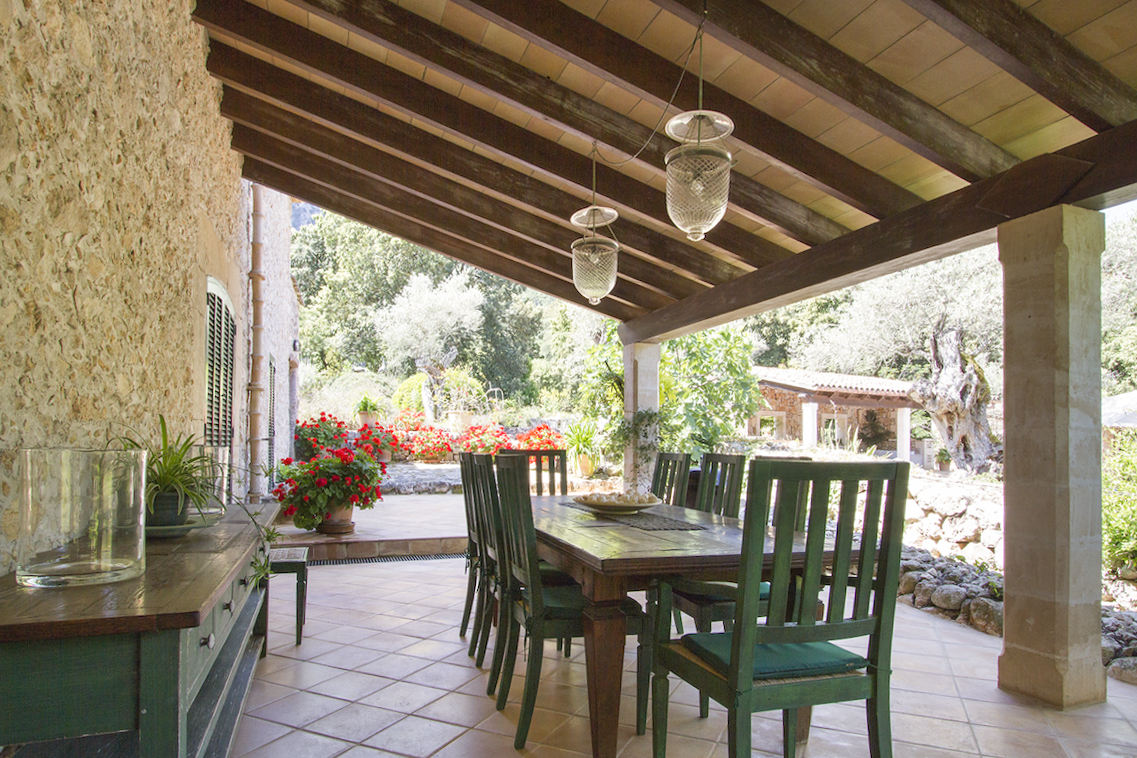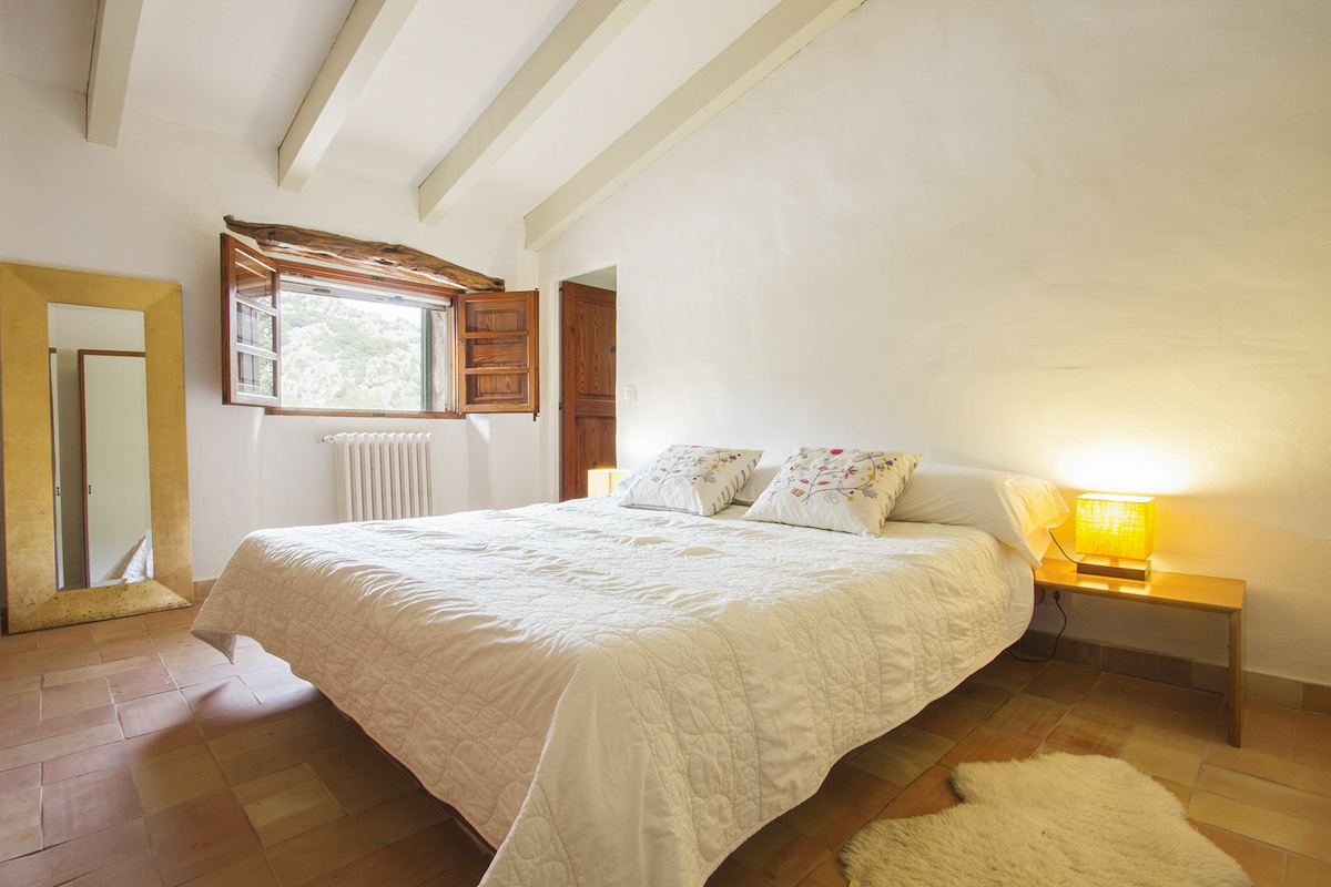 Outside the romance of this property continues, located at the start of the ‘Cami Vell de Lluc’ (old pilgrims way to Lluc monastery), it is a paradise for hikers, mountain bikers, cyclists and for those who love exploring and being active. The well kept grounds flourish with beautiful local flora and fauna with each season bringing different flowers and wildlife. The large kidney shaped pool has roman steps and is perfect for relaxing and looking out towards the views. If al-fresco dining and cooking is your things, then Villa Alona has all the facilities you need, with a charming outdoor dining area for the whole group under a covered terrace. Villa Alona is an exceptional property, offering an incomparable Mallorcan experience that you will not forget.