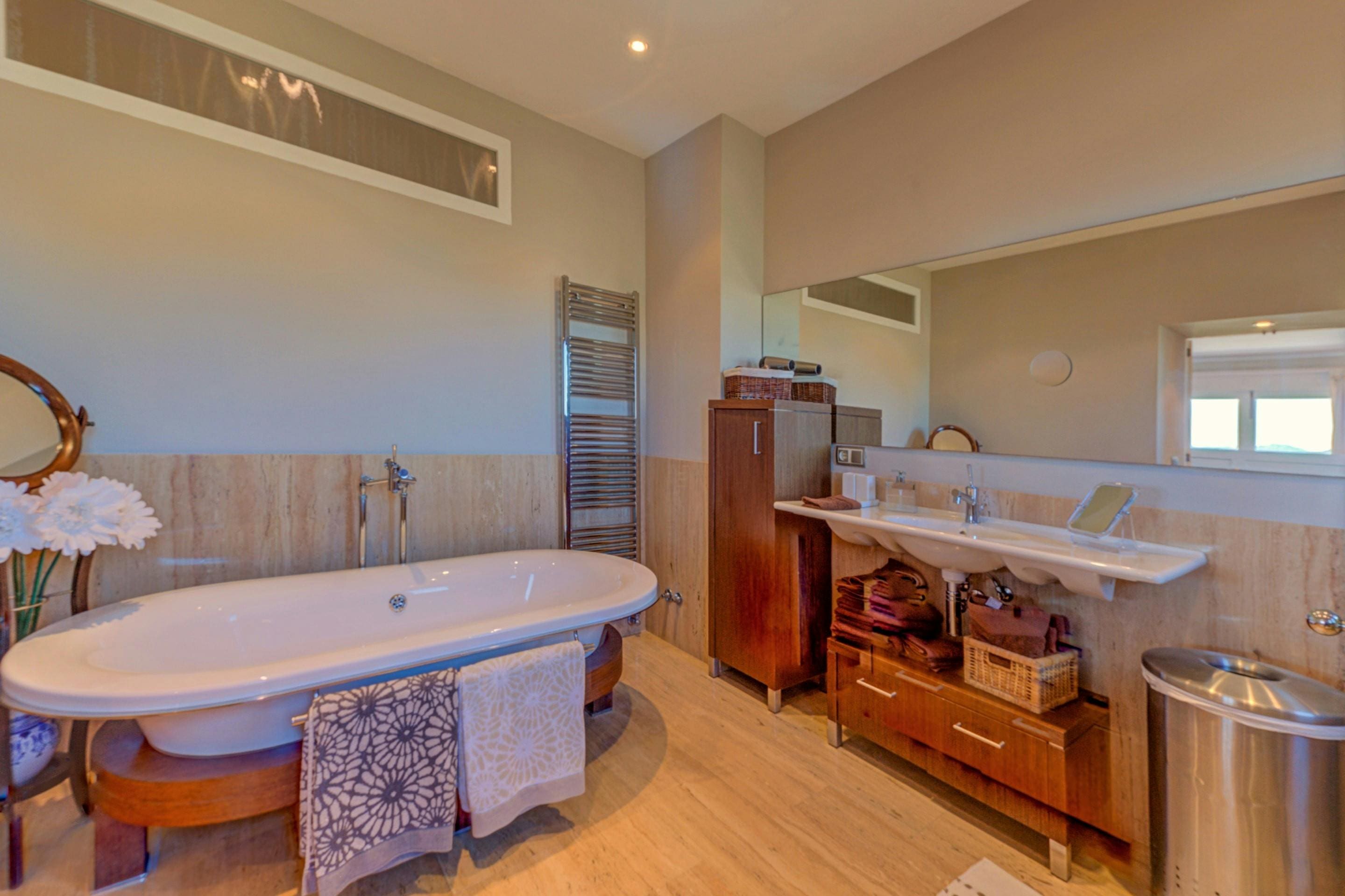 Step into the spacious interiors of Villa Tramuntana, where modern elegance meets comfort. The villa features five beautifully appointed bedrooms, each equipped with air conditioning to ensure a restful night’s sleep. The open-plan living area is designed for relaxation, with plush seating and large windows that invite in natural light. A fully equipped kitchen allows for gourmet meal preparations, while the dining area provides a welcoming space for family gatherings. With four luxurious bathrooms, there’s ample space for everyone to unwind.