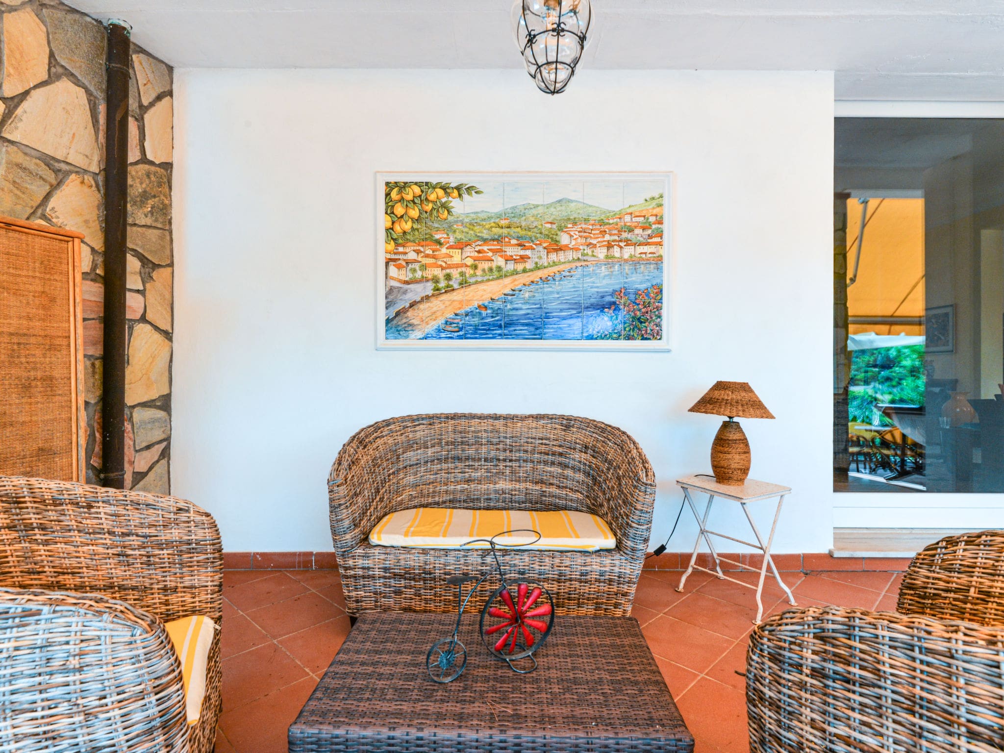 The villa is situated just over one kilometer from Porto Azzurro’s charming town center, easily accessible by car or a pleasant walk for the energetic.