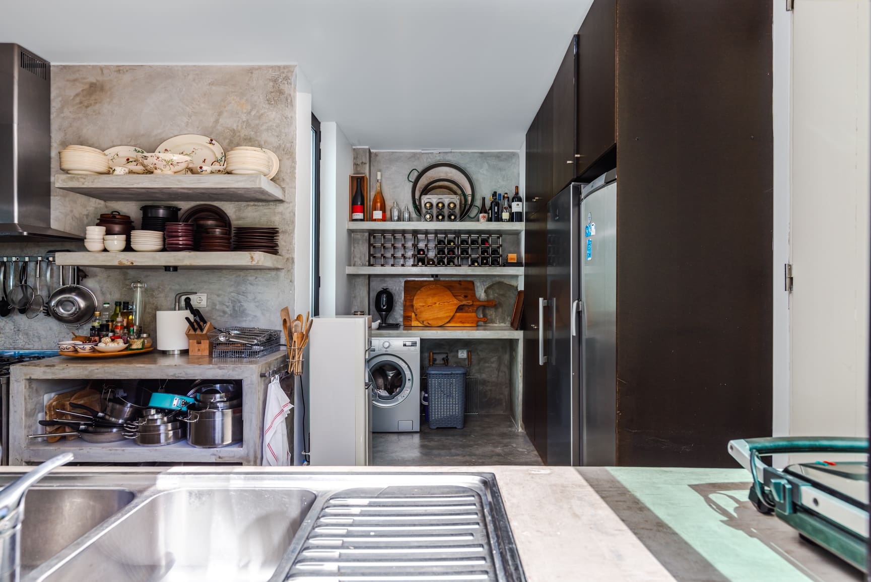 The villa’s interior is a masterpiece of modern aesthetics and comfort. With eight spacious bedrooms and six luxurious bathrooms, the property can comfortably accommodate up to 16 guests. The living spaces are designed for both relaxation and entertainment, featuring elegant furnishings and state-of-the-art amenities. Food enthusiasts will appreciate the two fully equipped kitchens, perfect for culinary explorations or enjoying meals prepared by a private chef.