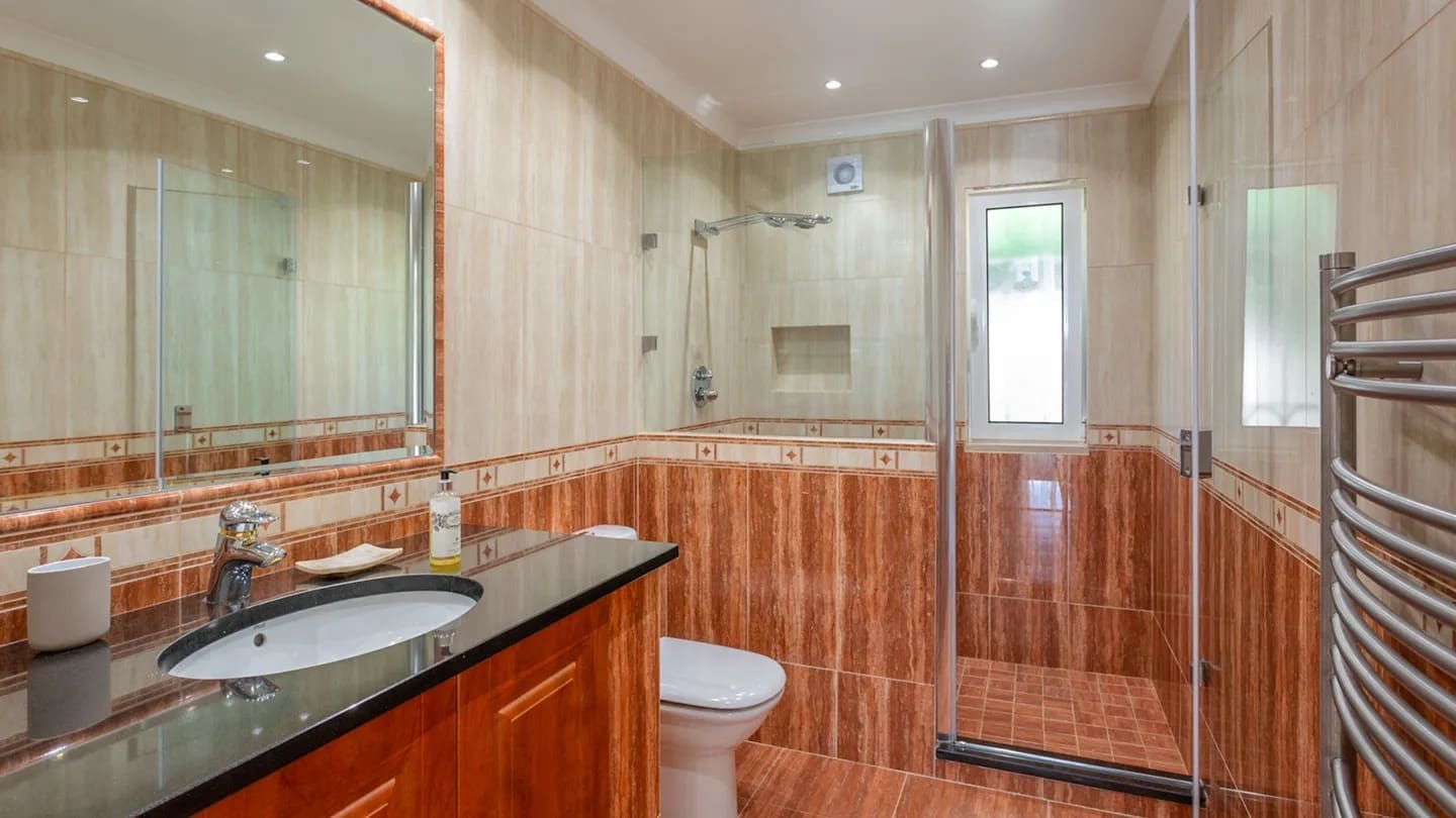 Five thoughtfully arranged bedrooms provide both privacy and flexibility. Two en-suite bedrooms offer added comfort, while the additional rooms share a stylish bathroom. The separate guest suite with pull-out sofa is ideal for teens, grandparents, or visiting friends.