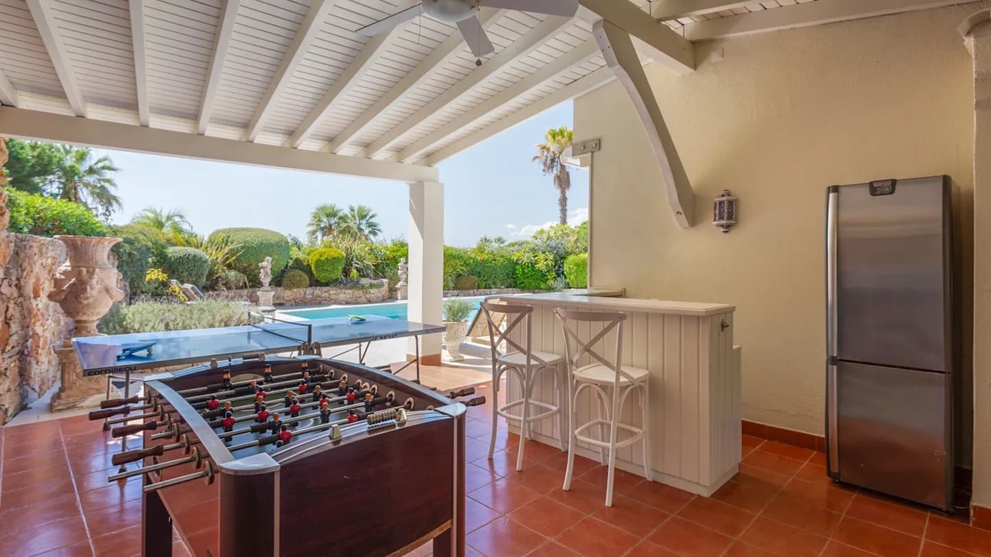 A shaded games area with table tennis adds a playful dimension, perfect for relaxed family competition.