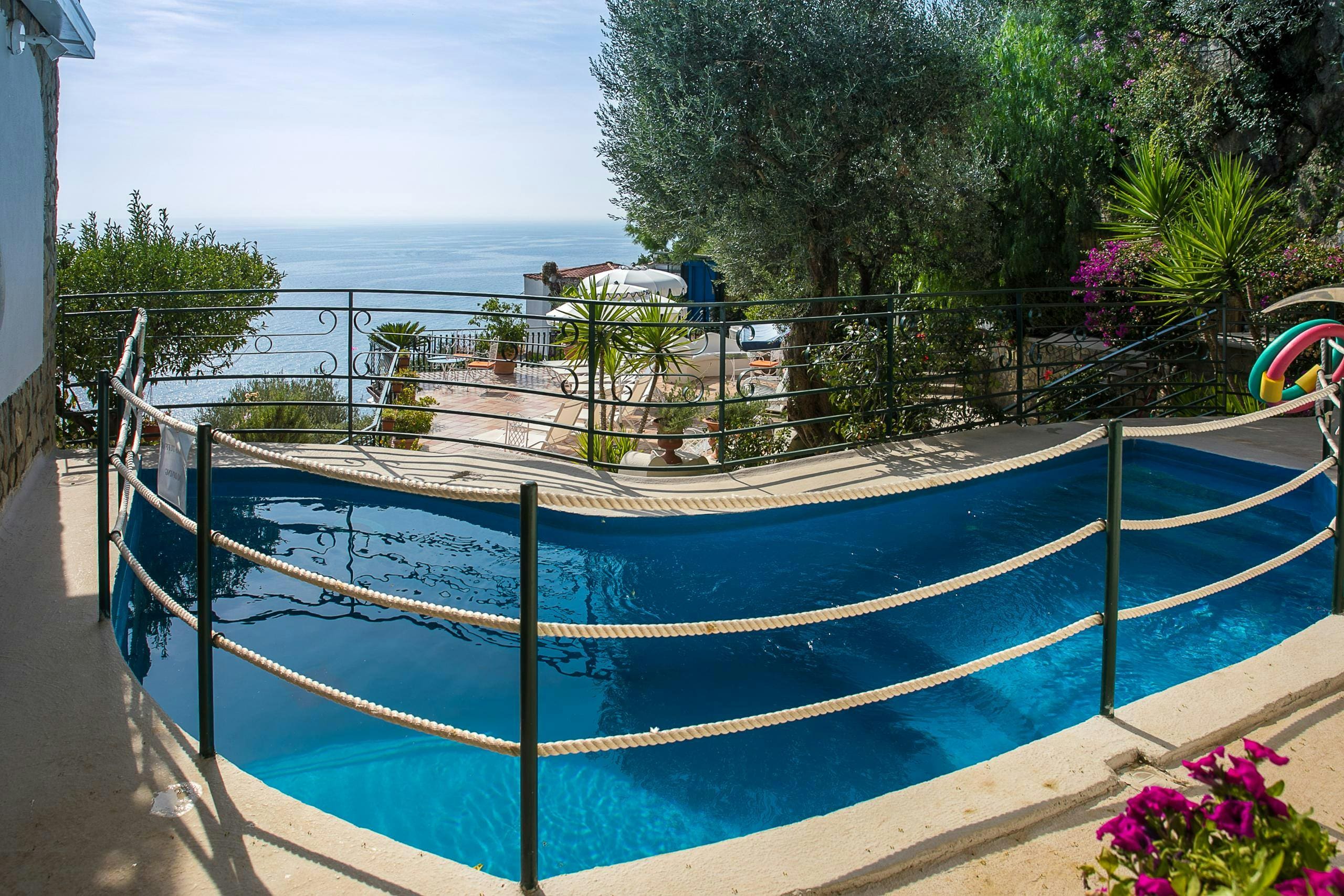Outside, the villa offers a series of sun-drenched terraces, perfect for al fresco dining or simply soaking up the Mediterranean sun. The highlight of the outdoor space is undoubtedly the private swimming pool, available from May to September, which offers an idyllic spot to cool off while enjoying the stunning sea views. Surrounded by lush gardens, the villa provides a tranquil escape with the beauty of the Amalfi Coast as a backdrop.