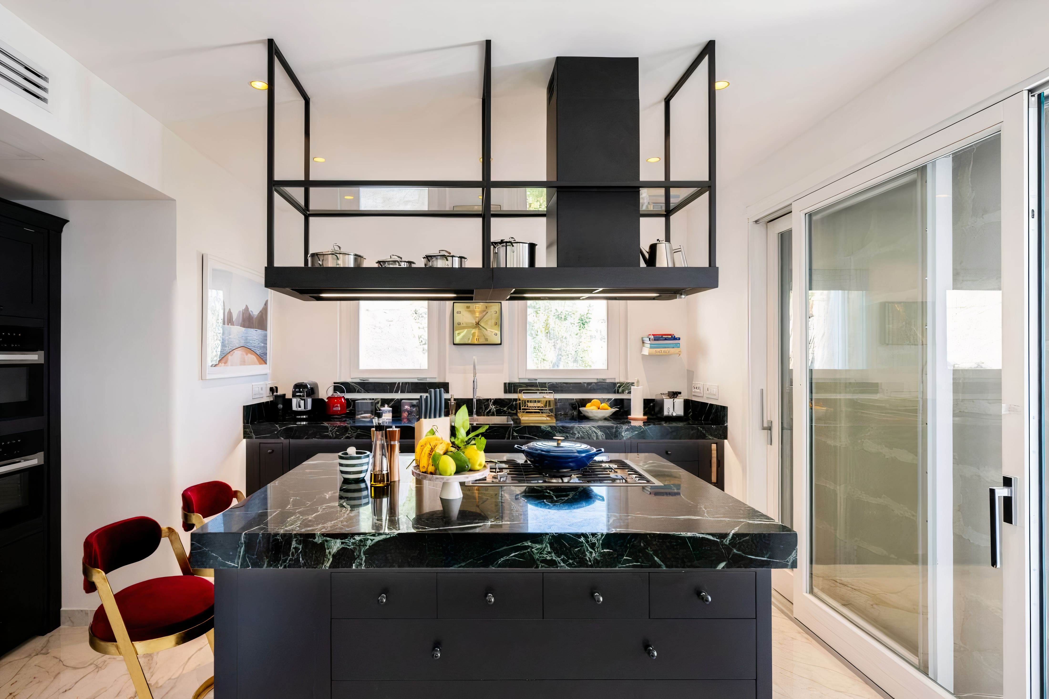 The interior of this luxury villa is a testament to refined taste and thoughtful design. With four spacious bedrooms, each accompanied by an en-suite bathroom, the villa ensures privacy and comfort for all guests. The living areas are designed for relaxation, featuring plush furnishings and large windows that frame the mesmerizing sea views. The fully equipped kitchen is perfect for culinary enthusiasts, and the elegant dining area invites you to savor meals with family and friends.