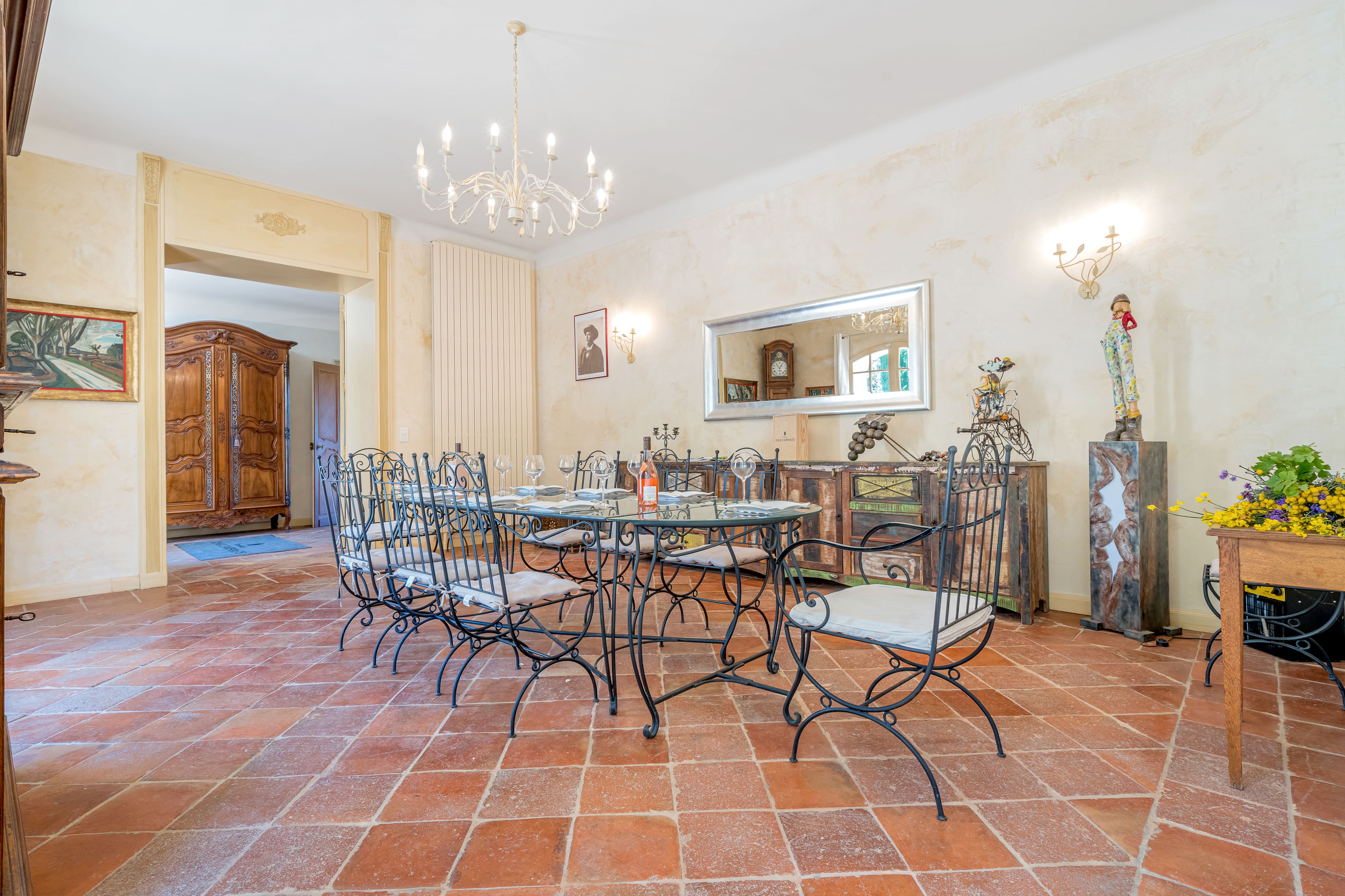 Embrace the beauty of Provence as you relax by the sparkling swimming pool, available from May to September. The villa’s expansive terraces offer the perfect setting for alfresco dining, with views over the vineyards and rolling hills. Wander through the manicured gardens, enjoying the tranquility and natural beauty that surrounds you.