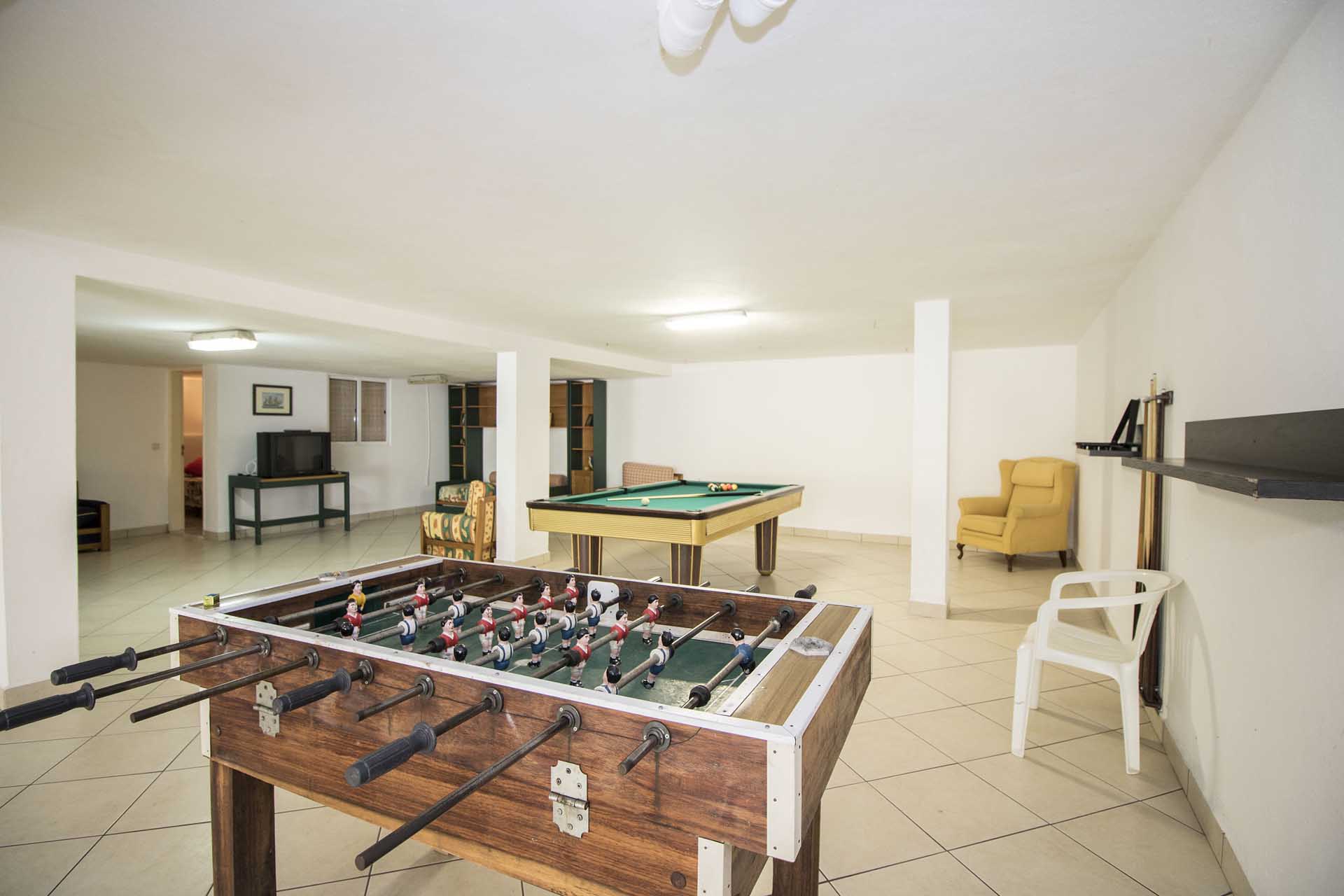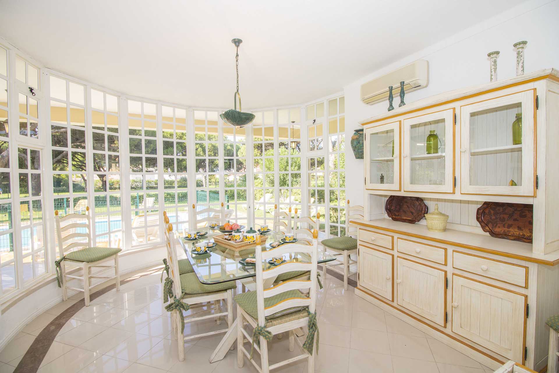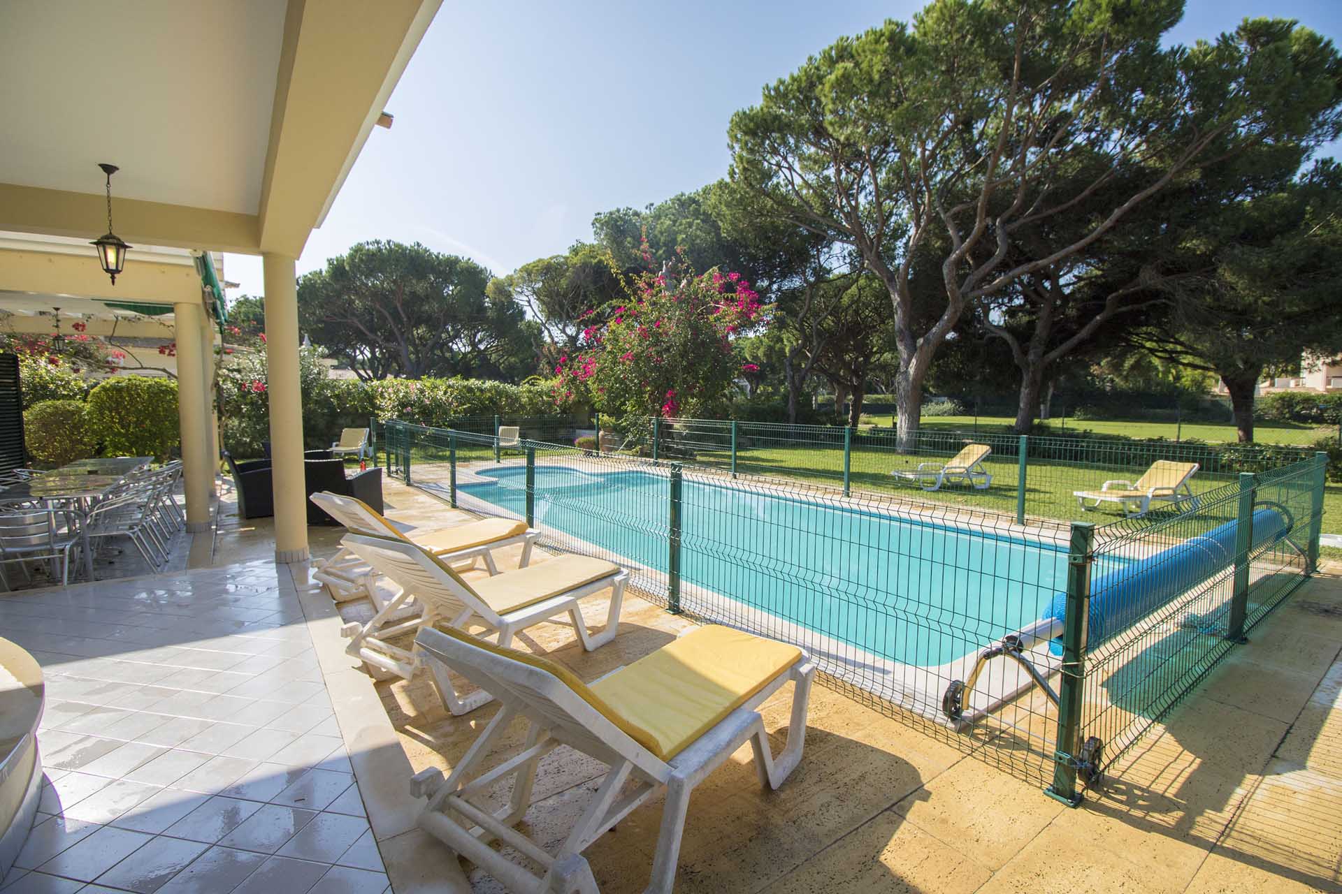 The first-floor hosts two double en-suite bedrooms and a bedroom with two twin beds and an en-suite bathroom. Downstairs, on the ground floor, two more en-suite bedrooms with two twin beds are found. Large sliding doors allow the dining room and living space, which are traditional in terms of its layout and décor, to be filled with natural sunlight. These areas of the villa exude style through the exquisite furnishings and pearl marbled floors. The kitchen is modern in design and fully equipped, with marbled counters. There is a door that leads on from the kitchen to the barbeque area, for convenience. Tucked away, next to the kitchen, is a small laundry room with a washer & dryer. The lower floor is incredibly spacious and hosts a pool table, table tennis and a football table, for those who wish to escape the demanding heat of the Algarve. It is here where the final two bedrooms with twin beds and an en-suite bathroom can be found.Vilamoura has a rich Roman history. An old fishing village and Roman Baths can be found in the town, where the walls tell the history of the destination, through their murals. Vilamoura is a trendy seaside town, that attracts a classy traveller. A host of prestigious yachts & boats swarm the Marina, which spills onto a strip of stylish bars, locally renowned restaurants and a casino. The glamour does not end there, as Praia da Marina and Praia de Falesia – two alluringly sandy beaches, can be found a short walk away.