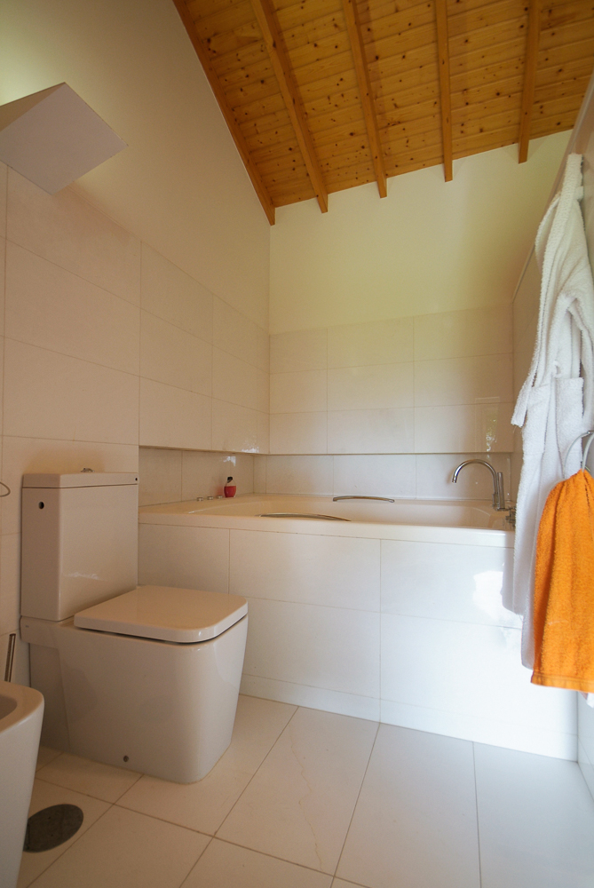 All on this same level, there are three spacious bedrooms: two doubles and one twin. All three are bright and modern, with comfortable beds, and two enjoy direct access to the garden. The master bedroom has a fabulous ensuite complete with a Jacuzzi bath, while the other two rooms share a lovely shower room.