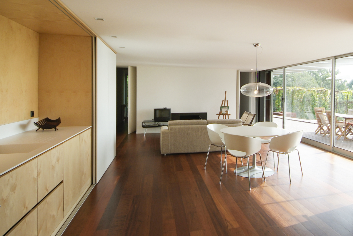 Inside, the charming living area overlooks the pool through large glass doors, ensuring the warm feel of the world beyond is welcomed into space within. There is a sofa in front of the TV, as well as a couple of comfortable chairs, and a dining table for six alongside this area.