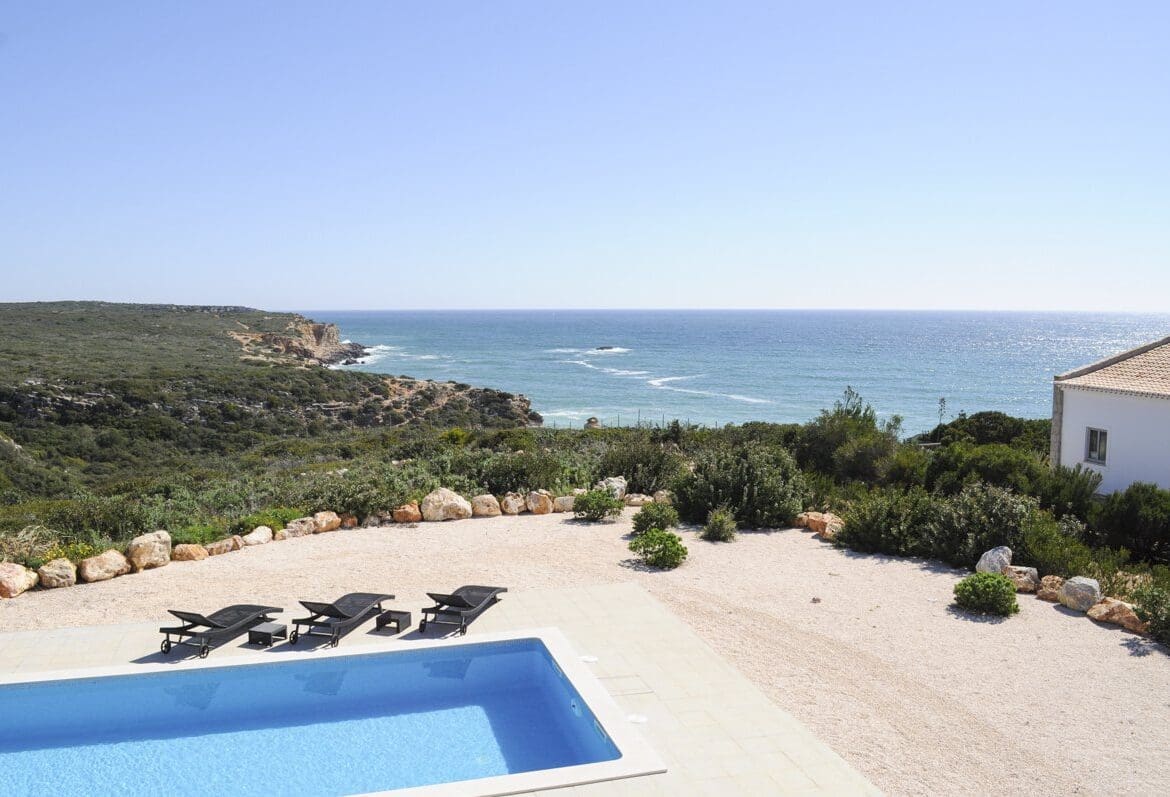 Stepping inside, the villa is modern and stylish, with contemporary furnishings and features throughout. On the ground floor you will find, three deluxe double bedrooms, all with their own en-suite bathrooms and double doors leading to the terrace! There is also a small kitchenette on this floor, perfect for whipping up some snacks and drinks to enjoy by the swimming pool. Stepping up to the first floor, there is a fantastic, open-plan living area, with huge floor-to-ceiling glass windows allowing panoramic sea views! The kitchen is fully-equipped for your use, perfect for preparing meals for the whole family. Cosy sofas are positioned near to the windows, making the most of the views and the dining table similarly sits looking out to the horizon! Villa Almirante offers something for everyone, a perfect holiday retreat. Located walking distance from shops, restaurants and the beautiful sandy beach, this villa offers the ideal location. Situated in Sagres, this charming area is very family-friendly, with stunning views and something on offer for everyone. The town of Sagres is primarily a surfing destination but there are sheltered pristine beaches for relaxing on, and a laid-back, relaxed atmosphere absorbs the town. Situated at the western tip of the Algarve, this is like no other destination in southern Portugal, offering raging seas that carve immense cliffs, bracing winds and intense summer sun. Holiday’s in this area will appeal to two main groups, those wishing to surf (kite, surf and body boarding) and enjoy the outdoors, or those looking to escape the crowns and hustle and bustle of the central Algarve, part of the allure of this stunning area is the remote setting, perfect for groups looking to relax and spend quality time together.