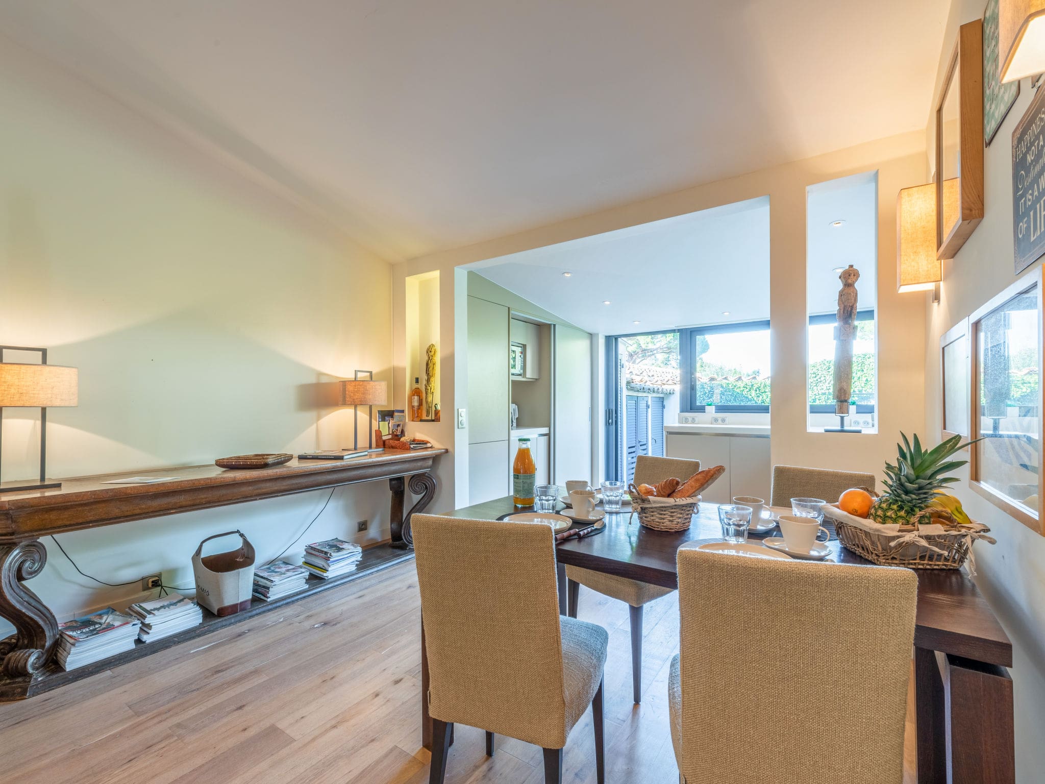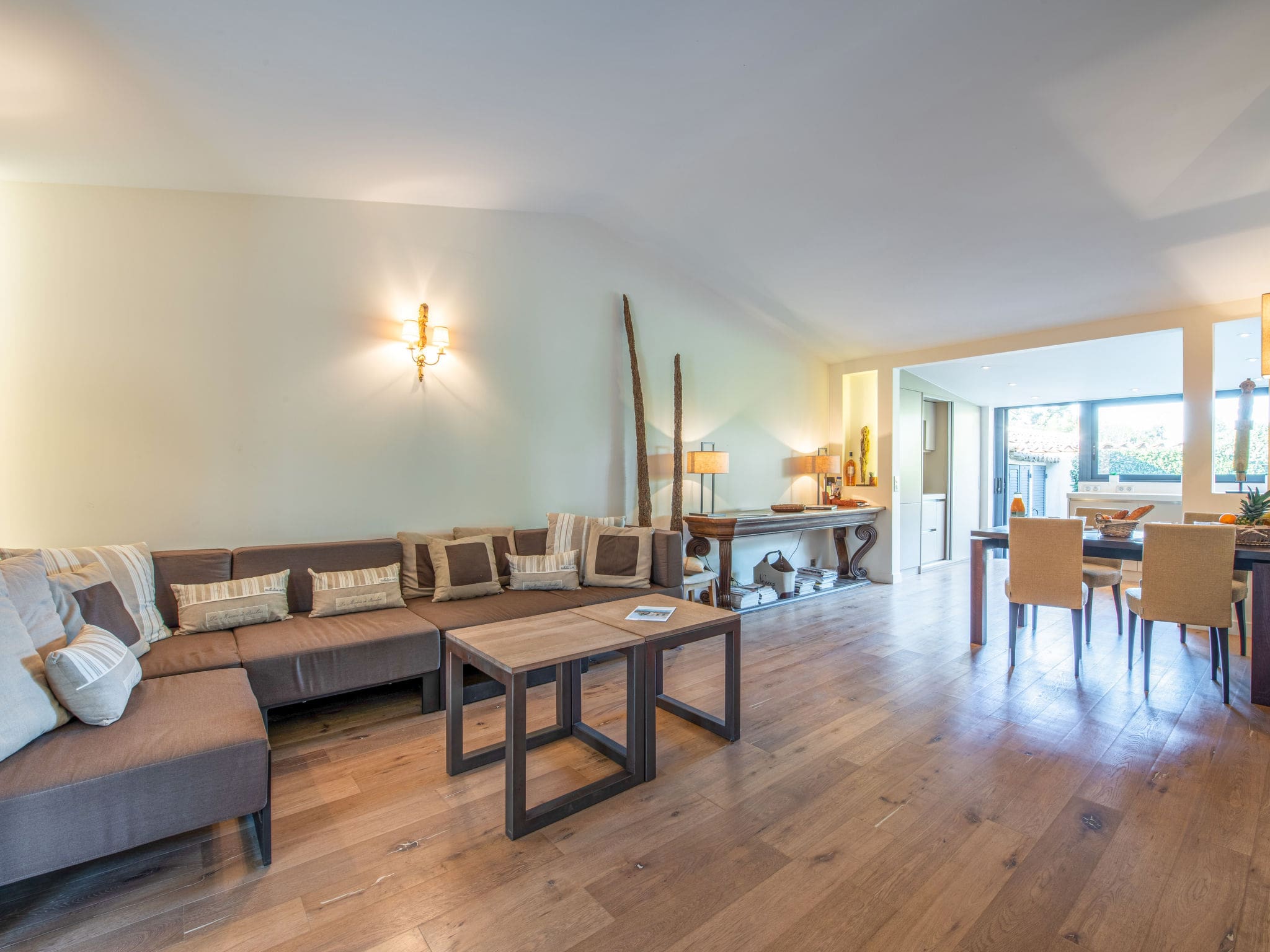 The villa’s crowning glory is its expansive 50-square-metre south-facing terrace, which provides an idyllic setting for al fresco dining and relaxation. Multiple French doors connect the interior spaces to this private outdoor retreat, creating seamless indoor-outdoor living. The terrace furnishings invite guests to enjoy morning coffee or evening aperitifs while soaking up the Mediterranean sunshine.