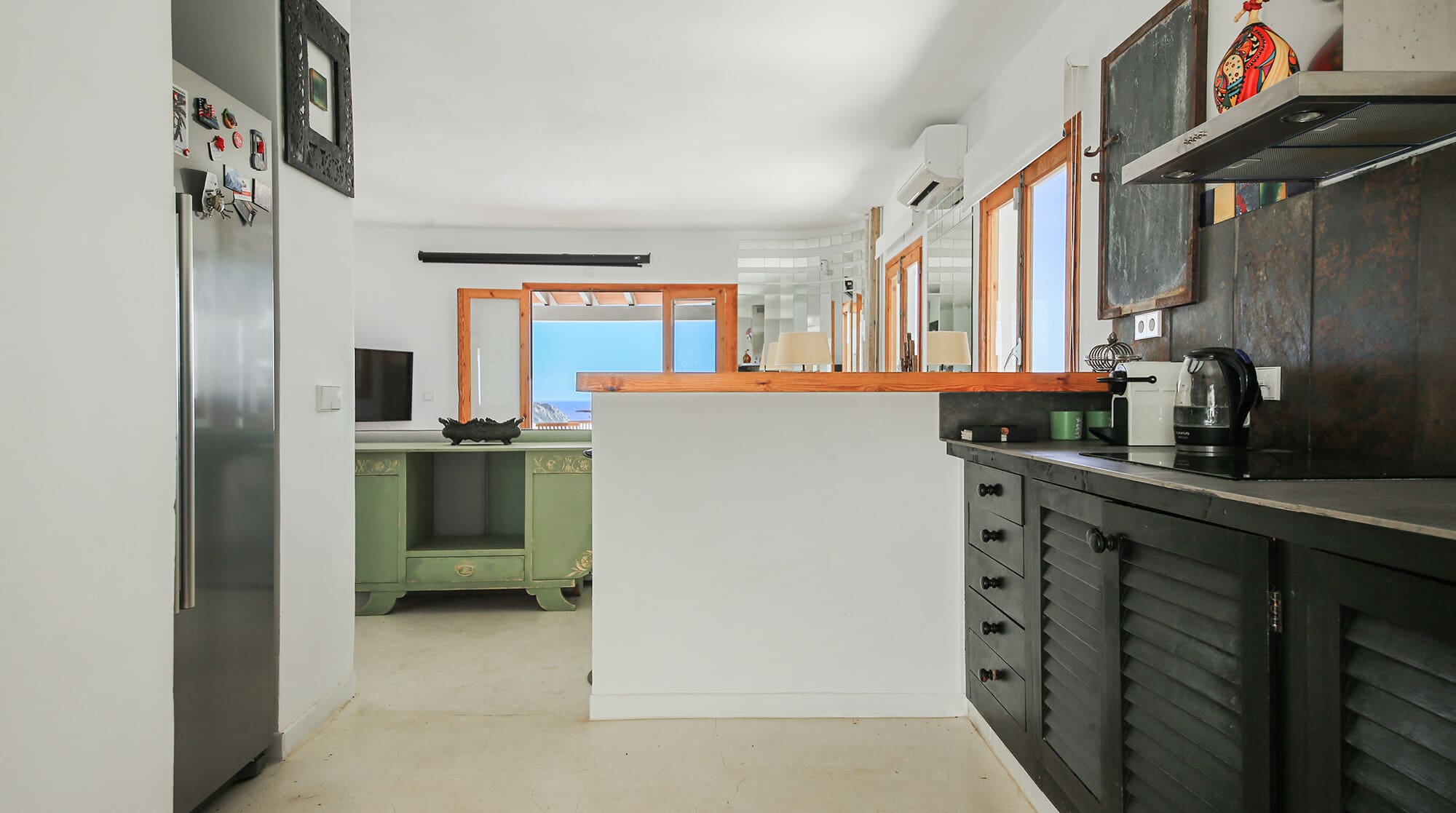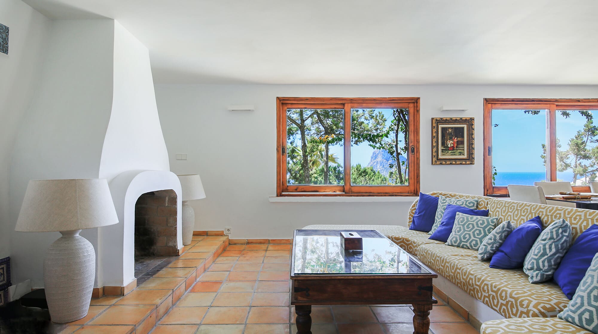 The villa’s interior is a testament to contemporary elegance blended with traditional Ibicenco charm. Its spacious living areas feature large windows that invite natural light and offer panoramic sea views. The open-plan kitchen is a chef’s dream, equipped with state-of-the-art appliances and a large dining area perfect for entertaining. With nine beautifully appointed bedrooms, each offering comfort and style, guests are ensured a restful retreat. Five luxurious bathrooms complement the bedrooms, featuring modern fixtures and exquisite design.