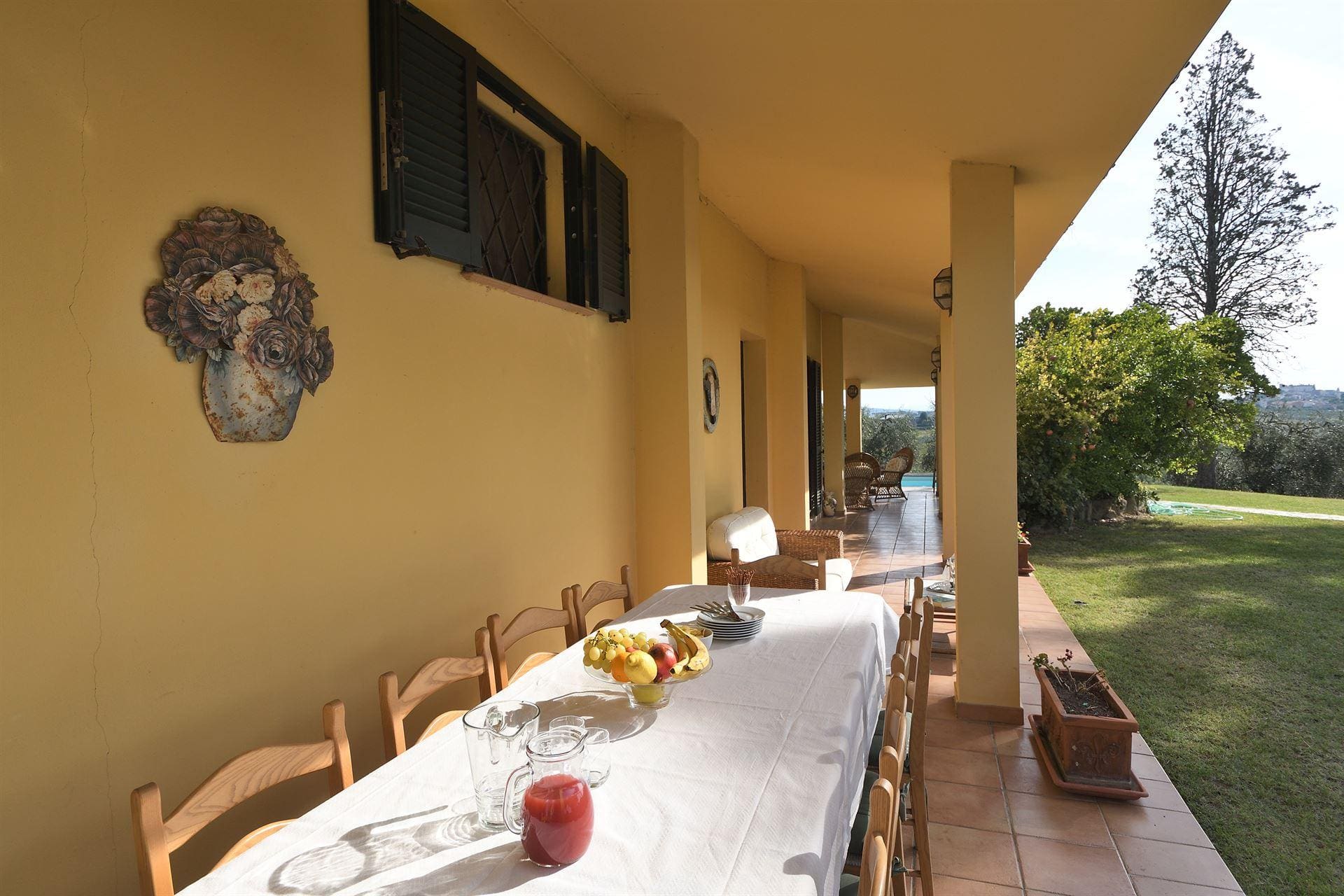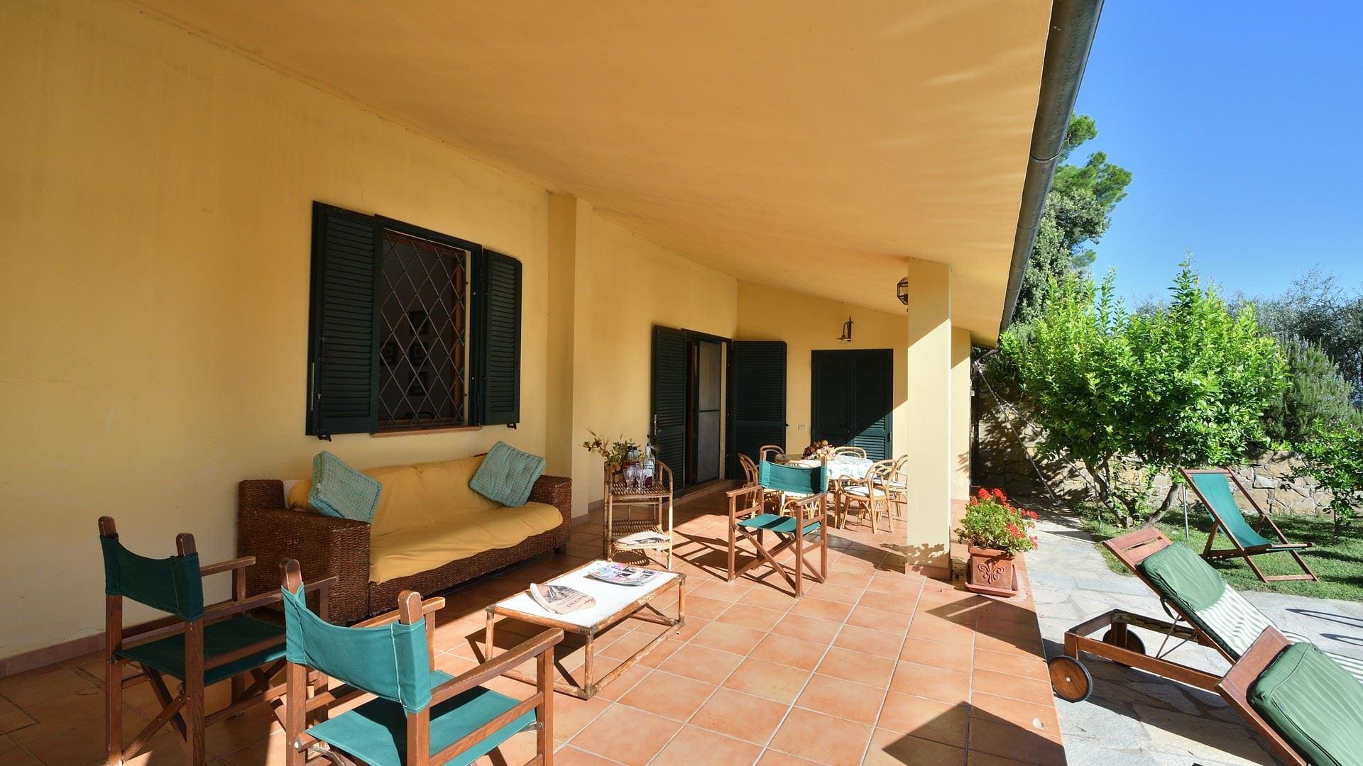 Outside, the villa’s expansive garden beckons with its seasonal swimming pool, available from May to September. Enjoy al fresco dining on the terrace, surrounded by breathtaking views of the Tuscan countryside. The villa’s location amidst olive groves and vineyards provides a serene backdrop for leisurely strolls, offering a true taste of rural Italy.