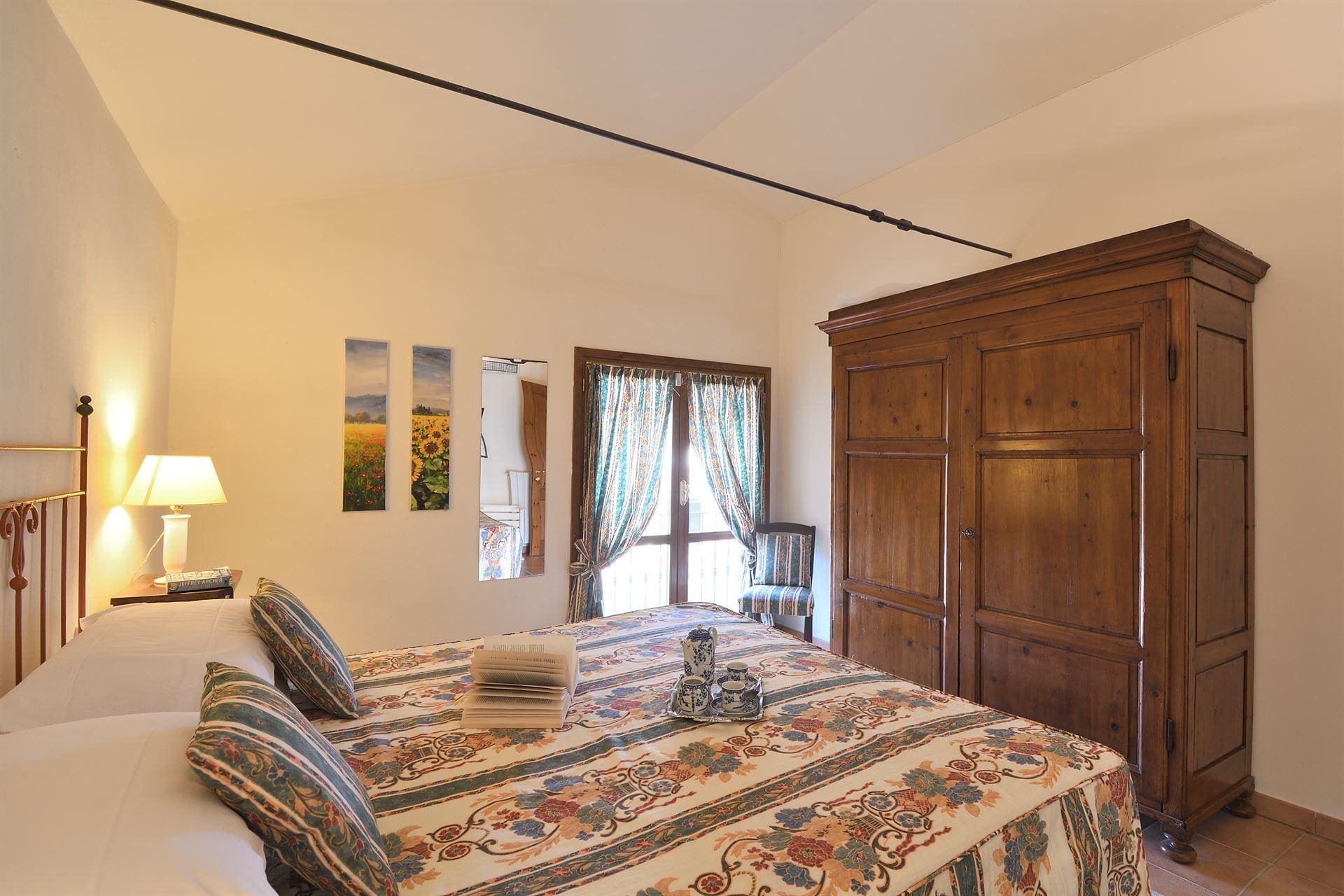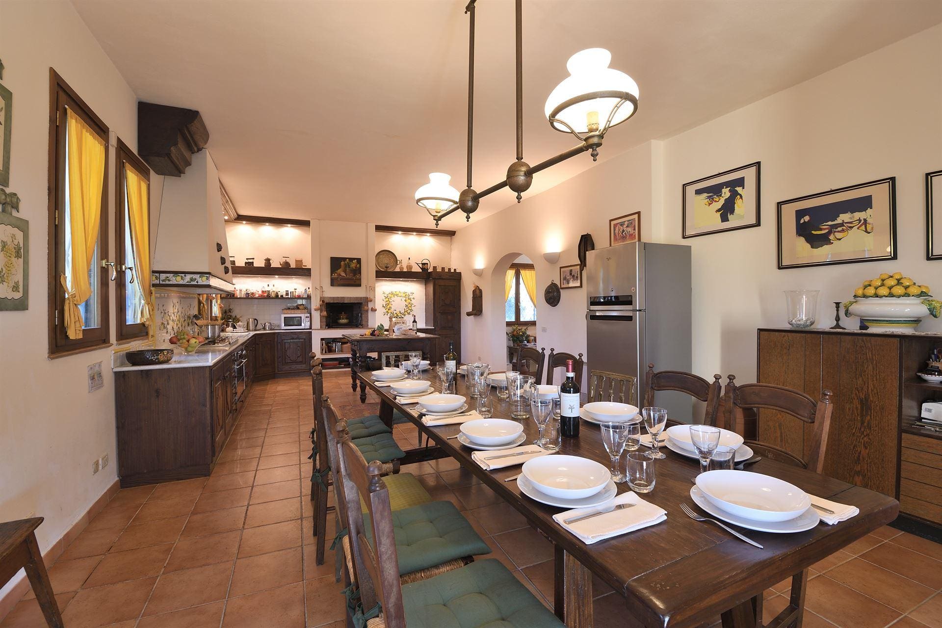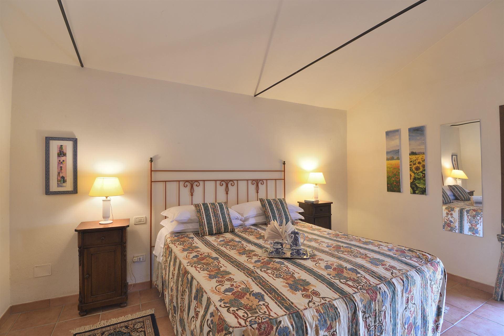 Step inside the villa to discover spacious interiors adorned with traditional Tuscan decor. The main house features six well-appointed bedrooms, while an additional seventh bedroom is housed in a private annexe, ideal for those seeking extra privacy. The versatile sleeping arrangements, including convertible double or single beds, cater to diverse guest needs. The living areas are inviting, with cozy seating and ample space for relaxation. A fully equipped kitchen ensures all culinary needs are met, making it easy to prepare family meals or host intimate dinners.