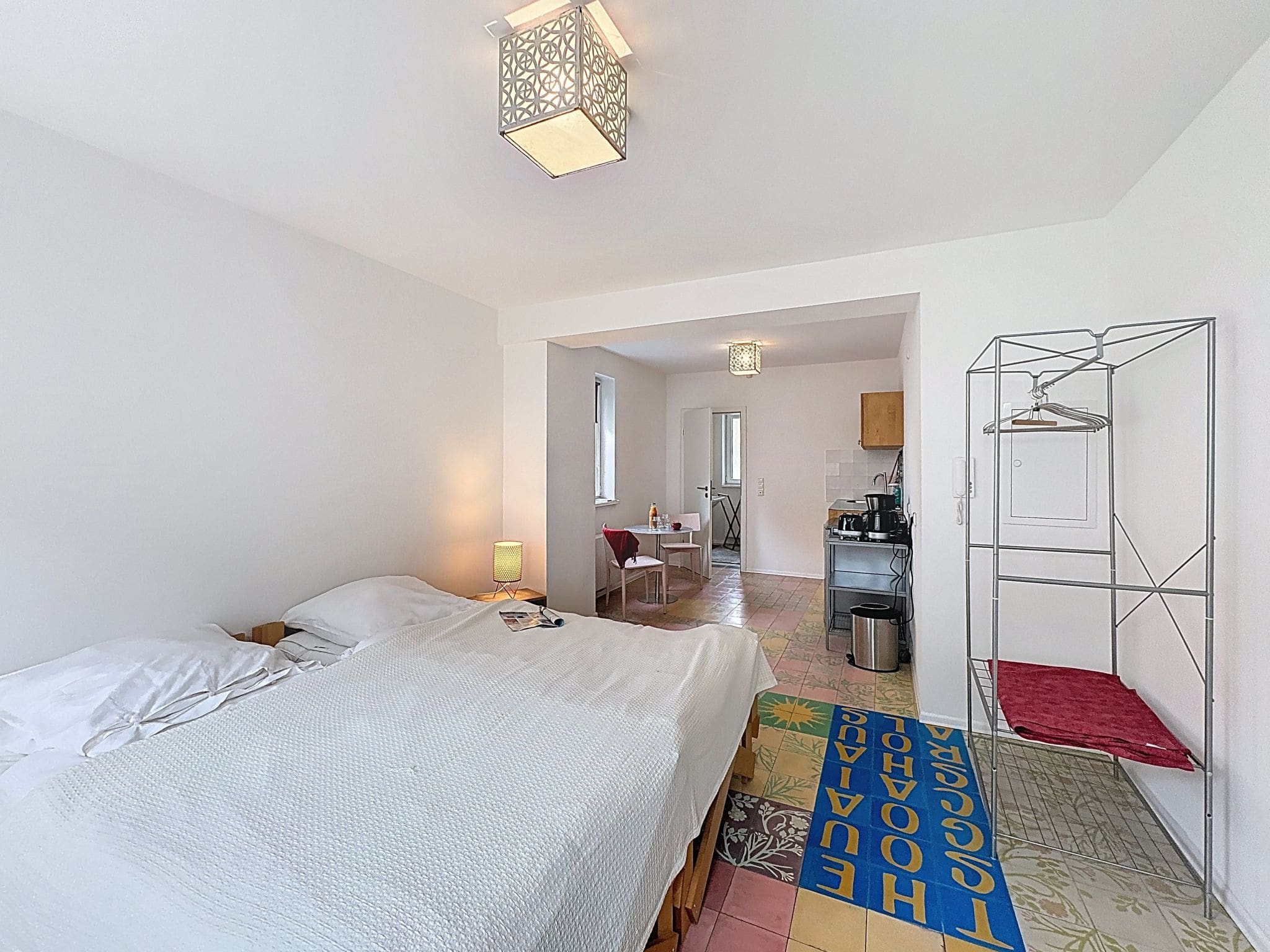 The property sits within a natural state garden shared with other residents, featuring a charming natural pond that creates a tranquil atmosphere. The grounds provide ample space for relaxation and outdoor activities, while public parking along the road ensures convenient access. The location offers immediate access to hiking trails and cycling routes through the Rhine Valley’s spectacular landscape.