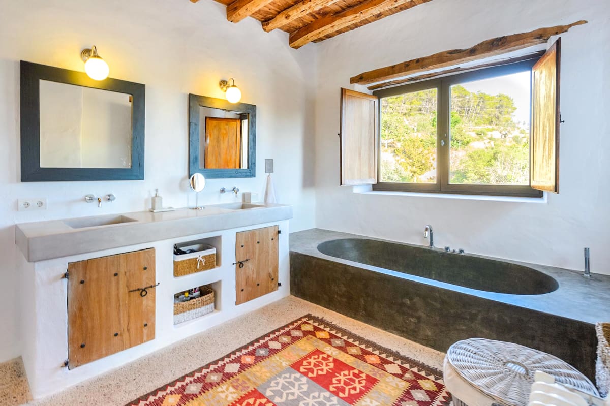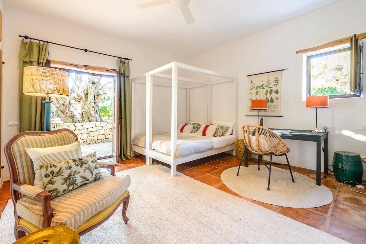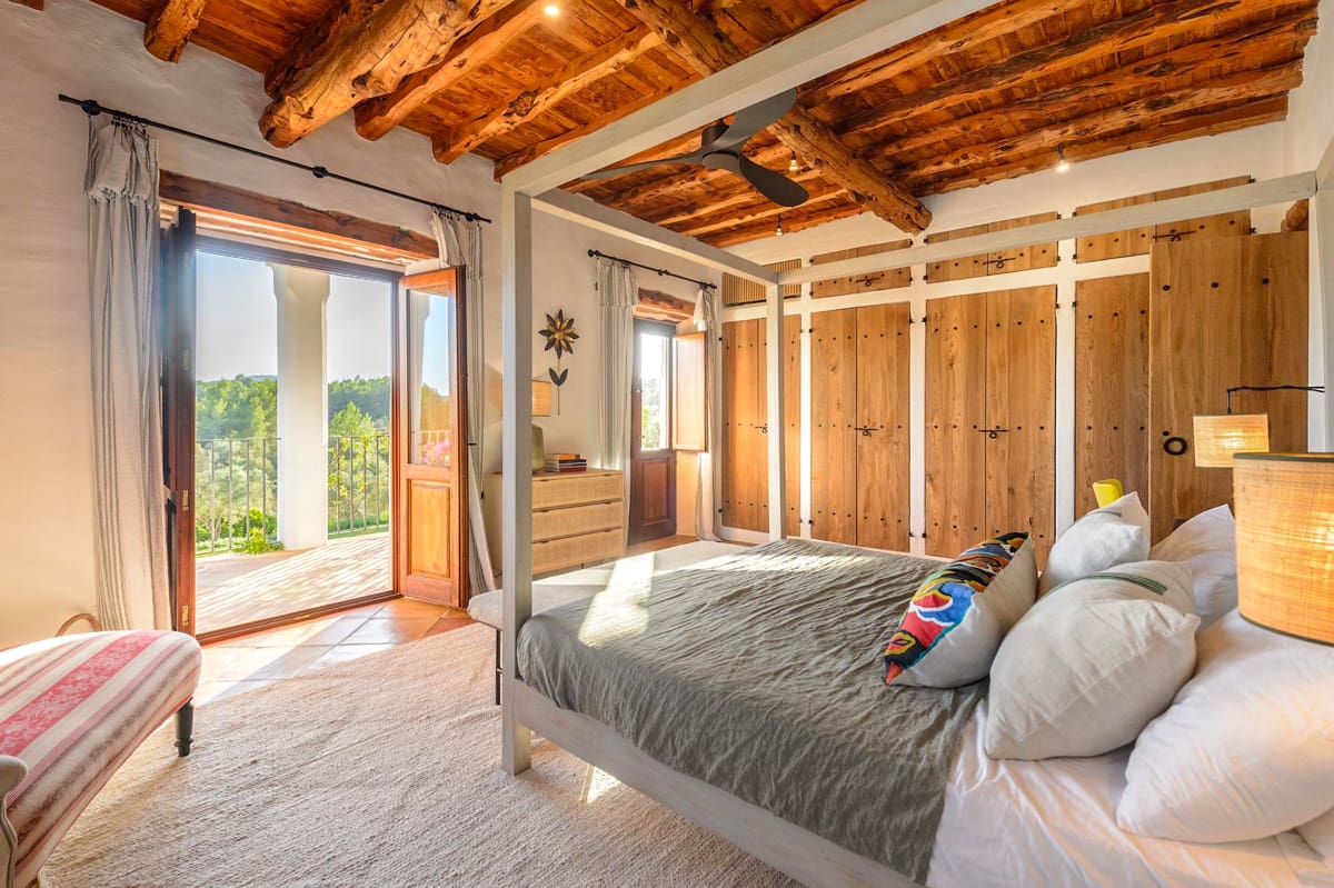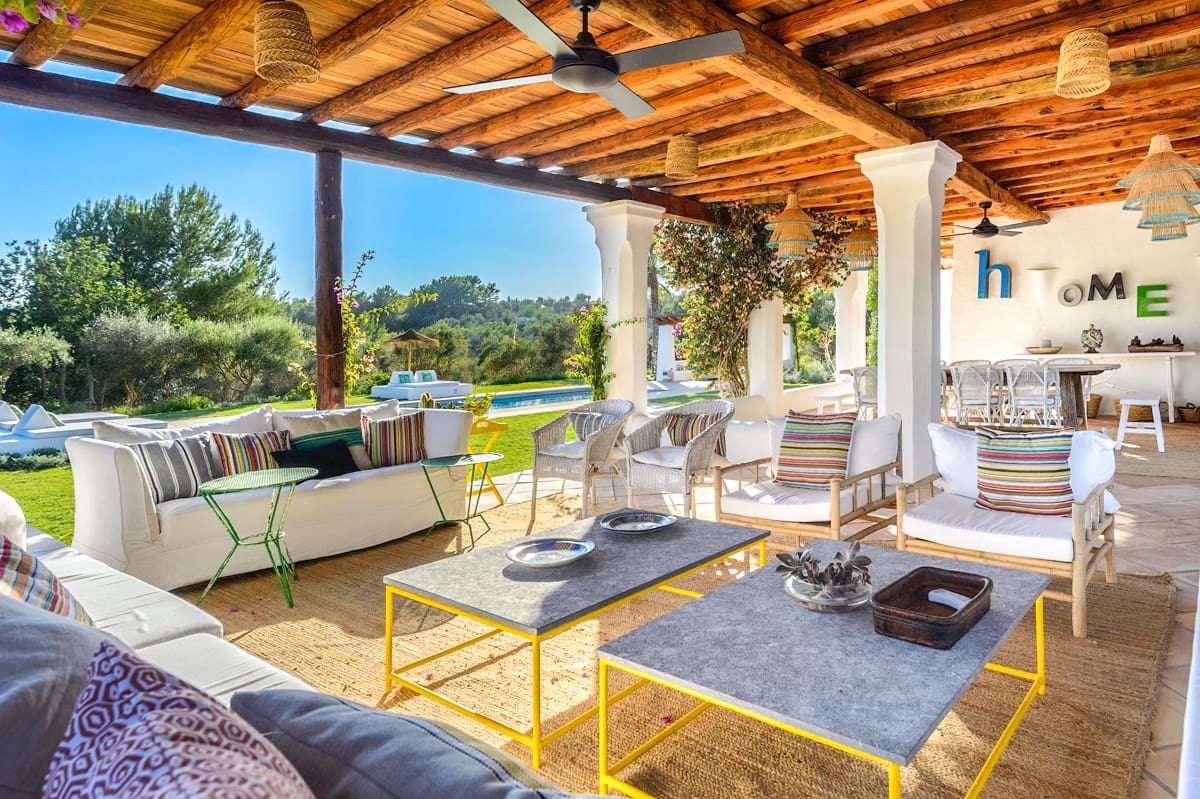 Villa Balafia’s open-air spaces are pristine, featuring perfectly manicured lawn areas and a huge covered terrace that incorporates both a cosy lounge space and an alfresco dining area. The centrepiece of the grounds is a large private pool, which is easily accessible via steps and is surrounded by luxurious day beds and a pretty pergola that houses a comfy chillout area. It’s the perfect spot for enjoying after-drinks and conversation or relaxing with a good book as you soak up your magnificent surroundings on one of the most beautiful and idyllic parts of the island.Villa Balafia is a visually stunning architectural masterpiece nestled in the beautiful hamlet of San Llorenc on the island of Ibiza. Showcasing luscious rural views and accommodating up to ten guests across five luxurious bedrooms, this incredible property is the perfect island retreat for anyone who truly wants to get away from it all. Featuring an elegantly decorated interior, immaculate gardens, and a private pool, a stay at Villa Balafia is sure to be a memorable experience that you’ll be talking about for years to come!