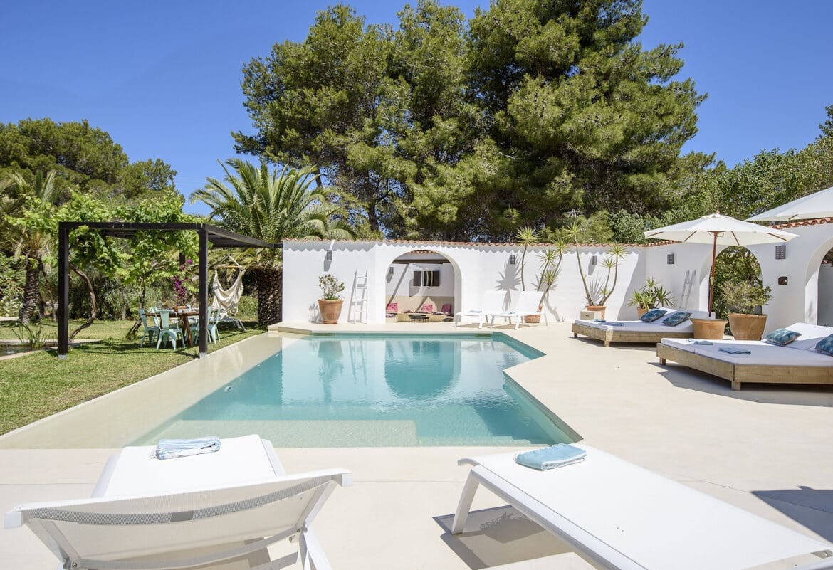 Finca Miranda oozes charm and warmth with palm-filled gardens and low, whitewashed buildings clustered around a gorgeous sunny pool deck. With six fabulous bedrooms, this outstanding villa sleeps up to 12 guests. Finca Miranda is situated within walking distance of the very pretty Port d’es Torrent and just a five-minute drive from the beautiful west coast sunset beaches of Cala Bassa and Cala Conta. Port d’es Torrent is one of Ibiza’s hidden gems, blessed with Caribbean-esque, calm turquoise waters and perfect sands. Just 300m from the villa is Ibiza’s best supermarket ‘Es Cuco’, though within the sun-dappled oasis of Finca Miranda you could be in the middle of no-where. It is totally private and secluded. Cala Bassa is one of the most beautiful coves on the island and is surrounded by ancient, gnarled Sabina woodland. It is totally gorgeous, as is the famed Cala Conta Beach with its magical views to the little islands off the coast, especially at sunset. Finca Miranda’s exterior spaces are astonishing with lush lawns featuring majestic palms, mature Mediterranean plants and even a small fish pond. There are various terraces offering shady spaces as well as sun-drenched ones, a fantastic 10m x 5m swimming pool and several outdoor lounge and dining areas. Deluxe day beds and loungers surround the pool, perfect spots to enjoy the rays and your holiday read. There is a shaded courtyard under a fragrant pine to chill and enjoy some cocktails or keep an eye on the built-in barbecue. You can choose between poolside dining under a pergola draped in colourful bougainvillaea or a cooler, covered space alongside soft sofa seating. The choice of entertainment space is endless. The interior of this impressive, lavish villa is bright, colourful and brimming with traditional beamed wooden ceilings, terracotta tiles and rustic wood. You will immediately feel at home in such lovely, comfortable surroundings. The creamy white space of the main living area boasts plush sofa seating set around a fabulous winter fireplace. Two steps above, on the mezzanine level, a grand piano invites a play. The sunny, rustic kitchen is charming with its unique features and a large breakfast table. Sliding glass doors open to the pretty courtyard. From here you can access the laundry and the well-equipped gym offering yoga mats, weights, a cross trainer and a multi-station machine. The gym also houses three bicycles which guests are very welcome to use. The villa’s six dreamy bedrooms offer a calm and inviting ambience with their rustic, individually chosen accessories and crisp white linens. The master bedroom boasts a kingsize bed, a charming ensuite bathroom with a bath and shower, a homely lounge area with a winter fireplace, beautiful views of the pool area and access to a terrace. Bedroom 2 is a cosy independent guest room with a double bed, an ensuite shower room and lovely views. Bedroom 3 also has a double bed and an ensuite shower room with direct access to a sunbathing roof terrace. Bedroom 4 is very spacious and has a double bed, ensuite shower room and access to the pool area. Bedroom 5 is ideal for children as it has bunk beds plus an ensuite shower room and access to the pool terrace. Finca Miranda is a wonderful, charming oasis offering complete seclusion but within steps of fabulous amenities. Port d’es Torrent is a lovely tranquil spot on Ibiza, a welcome reprieve from the hustle and bustle of everyday life. The sheltered bay cradles its 150m sweep of fine silvery sand and calm glistening water. With Blue Flag status, the beach offers sunbeds and parasols, beach bars and a lovely atmosphere. Just 5 minutes away is its fast-living neighbour of San Antonio, a very lively resort with buzzing sunset bars, electric nightclubs, a vast range of water activities and a contagious buzzy atmosphere. The Sunset Strip is legendary where you can enjoy some cocktails, listening to the latest summer sounds and watch the vivid sun sink in a blaze of pinks, reds and oranges. Superclubs beckon the party revellers, and there is always something going on. The beautiful Cala Bassa boasts 300m of gorgeous beach with wonderful amenities. The Cala Bassa Beach Club has four restaurants offering Ibizan, creative fusion, oriental and gourmet dishes, all shaded by ancient juniper trees and it has an exclusive Taittinger Lounge. DJ’s play a mix of lounge, chill-out and house music and you can soak up the sun’s rays on superb, comfortable loungers. Cala Conta is formed of several stretches of sand. There are two regular beaches and one nudist one. Pretty Jurassic rocks or blissful dunes backdrop the beaches. The views are made of dreams towards the pretty islets and bobbing boats. You really must visit this beach at sunset. The beach is popular for swimming and snorkelling. Ibiza is known for its excellent spas and holistic vibe. The Pure Seven Spa at 7Pines Kempinski Ibiza, between the beaches of Cala Conta and Cala Codolar, is a luxurious haven of wellbeing, open to all visitors. From its fantastic cliff-top location, the views of the island of Es Vedra are incredible. Pure Seven Spa is one of the top spas on the island. At Excellence Luxury Villas we pride ourselves on going that little bit further for our guests. From private chefs to babysitters we can help you arrange those little extras that make it a truly memorable holiday. Simply fill in the