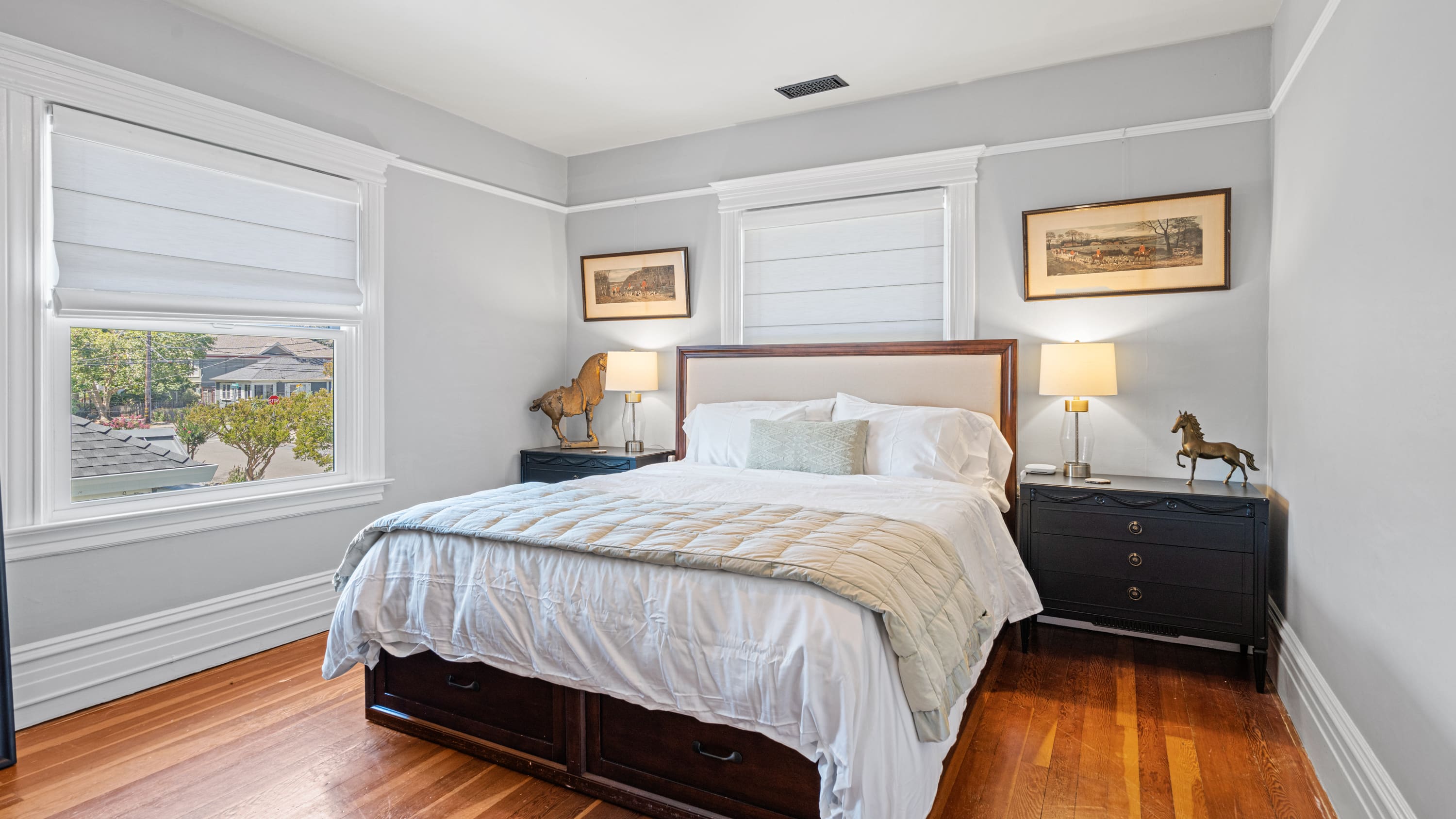 Step into a world of comfort and style as you enter this beautifully appointed home. The interior is thoughtfully designed with four spacious bedrooms, each uniquely decorated with artistic themes that reflect the vibrant spirit of Sonoma County. The fully equipped kitchen is a culinary enthusiast’s dream, perfect for preparing gourmet meals. For those mixing work and leisure, a sunroom office provides a peaceful space for remote working. The living area, adorned with plush furnishings and tasteful décor, invites you to unwind and relax.