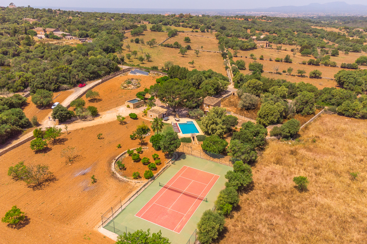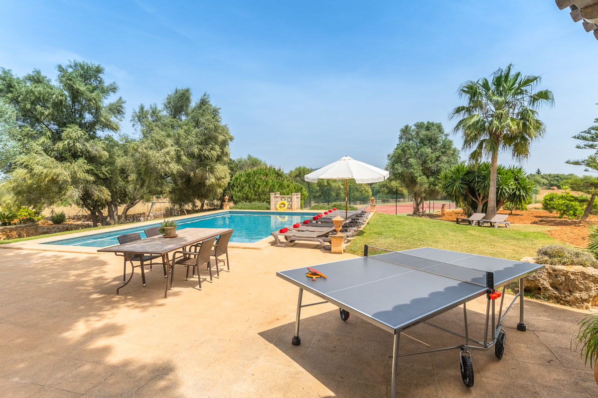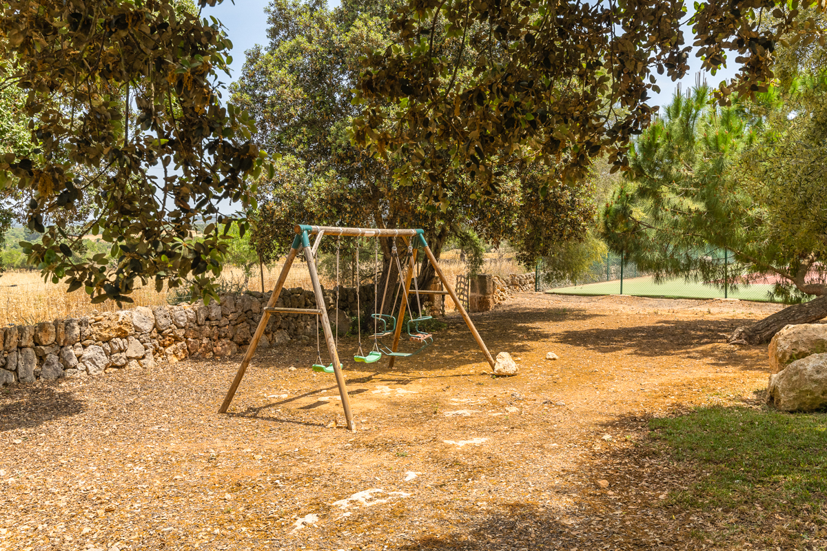 The fun doesn’t stop with the gorgeous private pool; however, just off to the side, you will find not only a table tennis table to strike up the friendly competition but also a full tennis court. Get some practice in if you’re familiar with the sport, or simply have a go at learning something new! Tucked to the side, you will also see a swing set, perfect for little ones or anyone looking for a quiet moment to feel like a kid again.Surrounded by lush green trees and with an incredible amount of outdoor space is where you will find Finca Xorca, a perfect Mallorcan home for anyone looking to make the most of the island. Located in the wonderful countryside towards the south, the home provides a wonderfully quiet and tranquil location for you to rest and recharge during your stay.