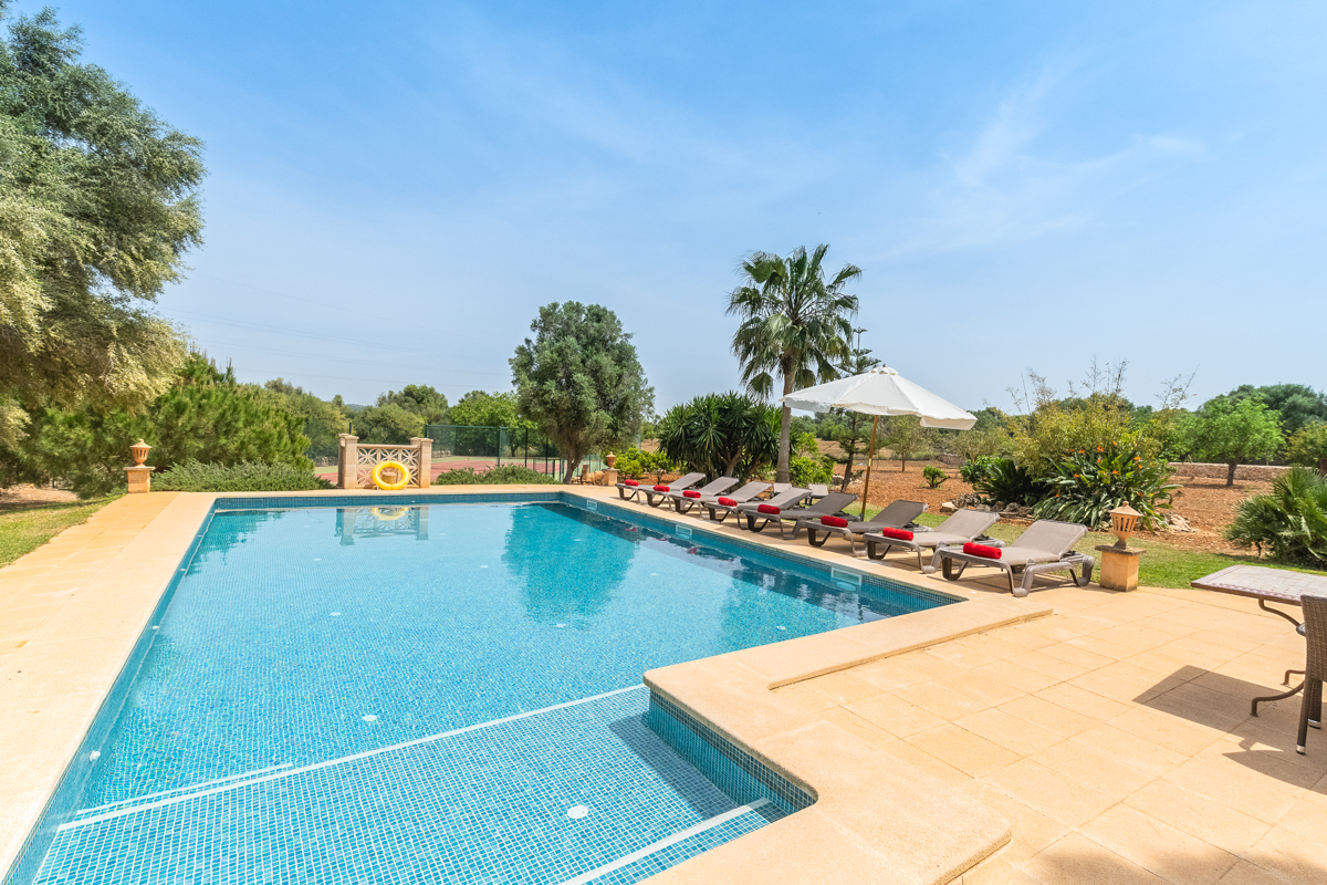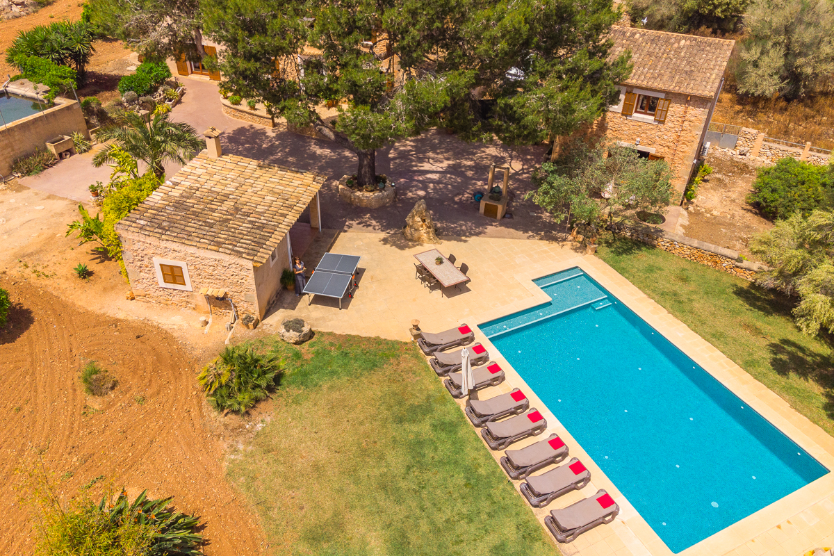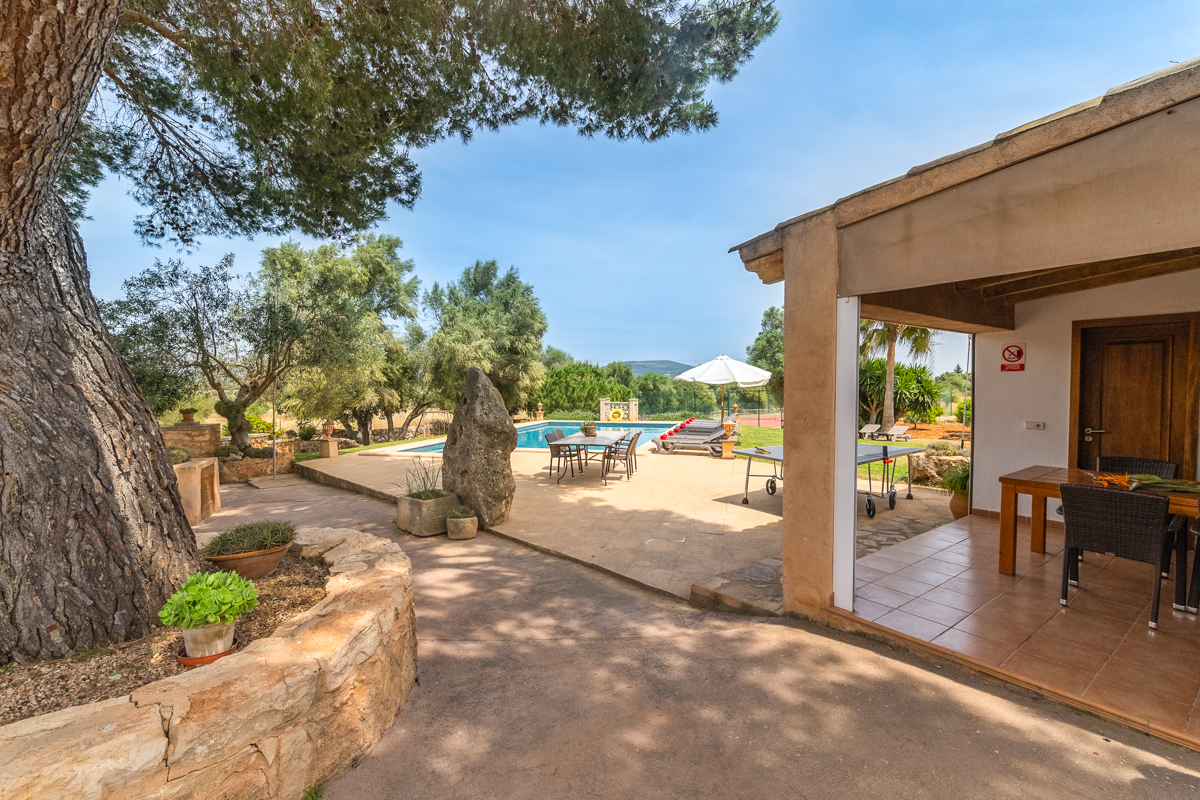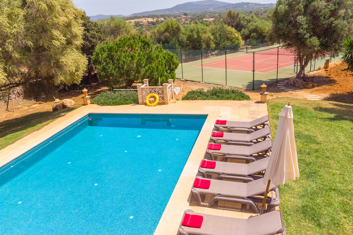 The fun doesn’t stop with the gorgeous private pool; however, just off to the side, you will find not only a table tennis table to strike up the friendly competition but also a full tennis court. Get some practice in if you’re familiar with the sport, or simply have a go at learning something new! Tucked to the side, you will also see a swing set, perfect for little ones or anyone looking for a quiet moment to feel like a kid again.Surrounded by lush green trees and with an incredible amount of outdoor space is where you will find Finca Xorca, a perfect Mallorcan home for anyone looking to make the most of the island. Located in the wonderful countryside towards the south, the home provides a wonderfully quiet and tranquil location for you to rest and recharge during your stay.