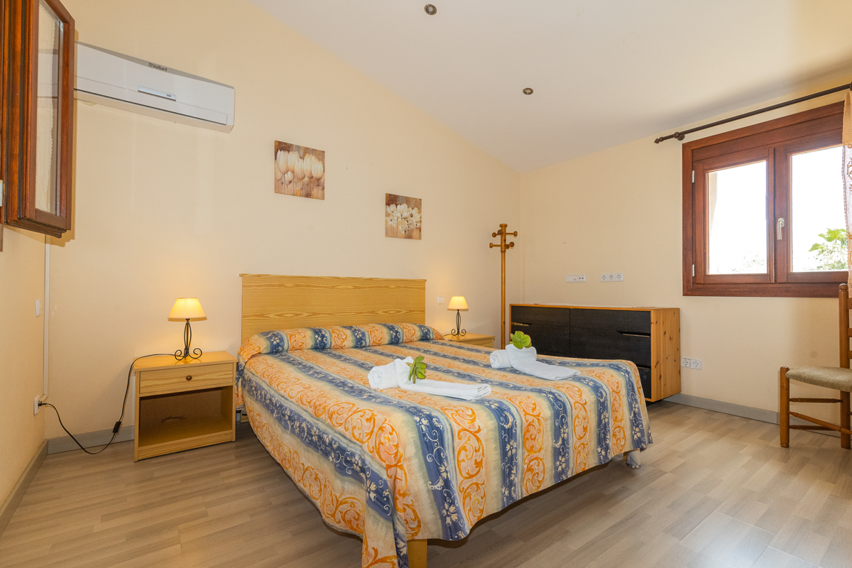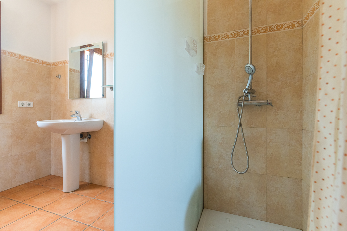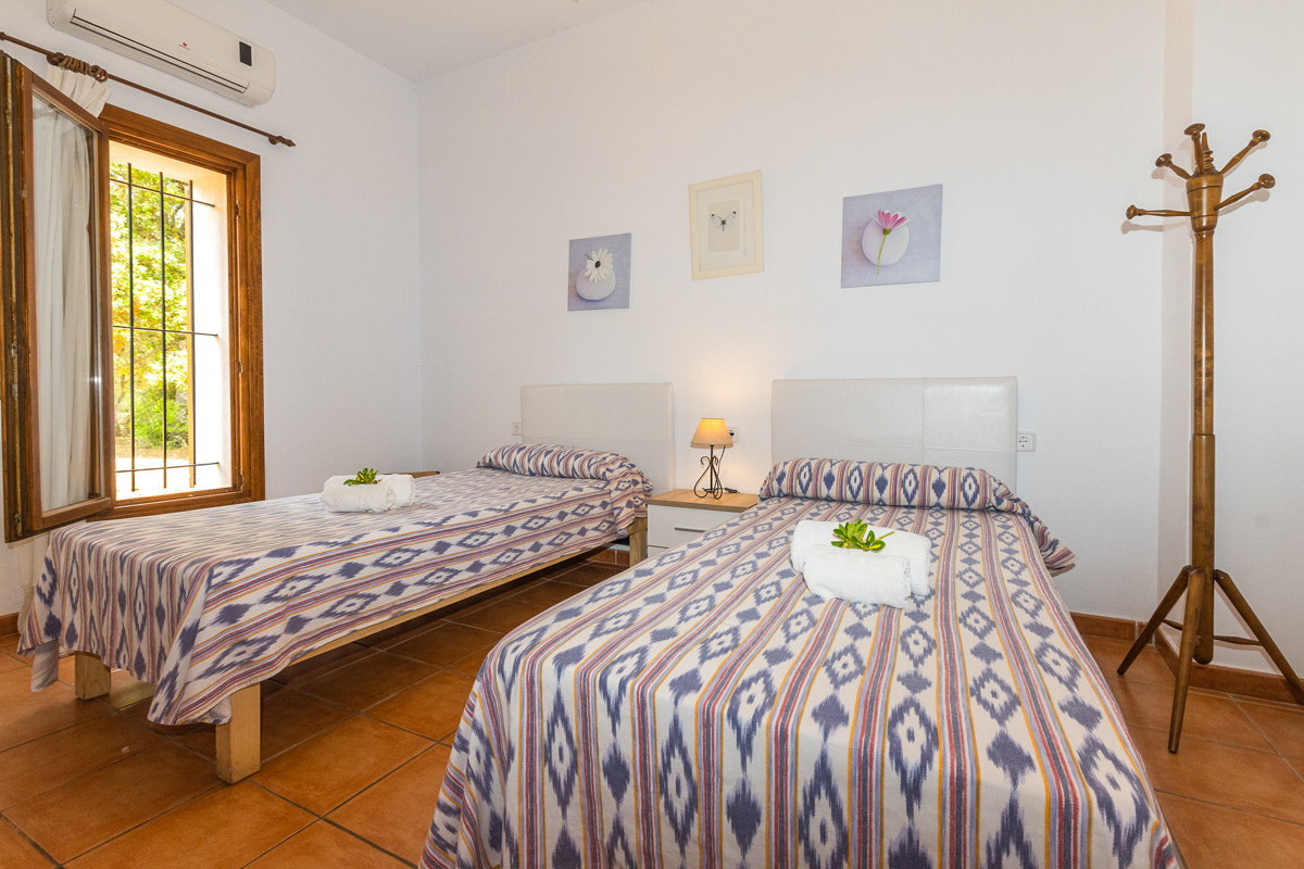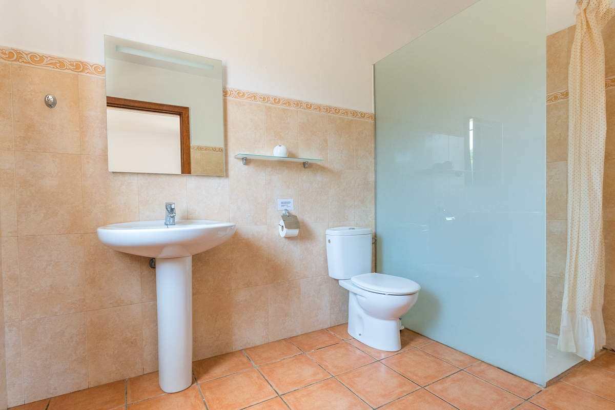 There are a total of five bedrooms in Finca Xorca, three twin rooms and two double bedrooms. On the ground floor, you will find one of the doubles and one twin, and the upper floor is host to the other three bedrooms. Every bedroom in this home is en suite, which is not only a wonderful added privacy but is also sure to cut down queue times in the morning! Each room is very spacious and airy, with cosy furnishing and air conditioning units. All but one of the upstairs twins also come with wardrobe space so you can fully settle in during your stay.