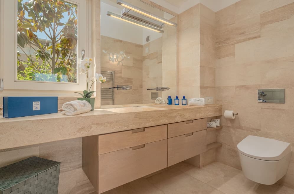 The villa’s outdoor area is a true highlight, featuring an infinity pool with a counter-current function for exercise, surrounded by lush gardens and terraces. Enjoy al fresco dining with stunning seaviews, and take advantage of the wood-fired pizza oven for an authentic culinary experience. Daily housekeeping and pool cleaning ensure a seamless stay.