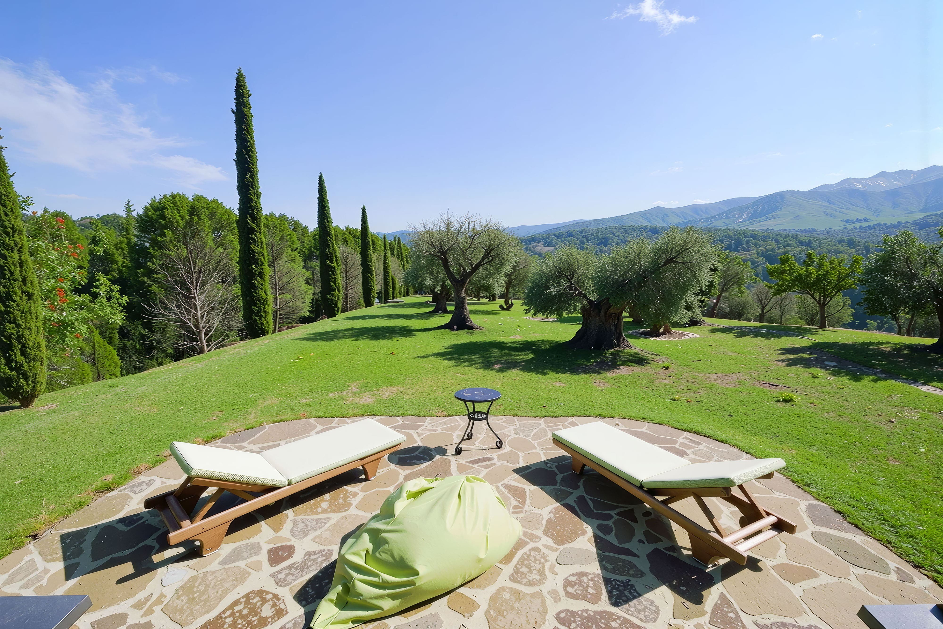 Step outside to experience the villa’s enchanting outdoor spaces. Surrounded by olive groves and rolling hills, the private swimming pool is a refreshing oasis during summer months. Enjoy al fresco dining with the villa’s wood-fired pizza oven and unwind on the terraces, where hammocks and loungers invite relaxation. The hot tub offers a perfect spot to soak under the stars.