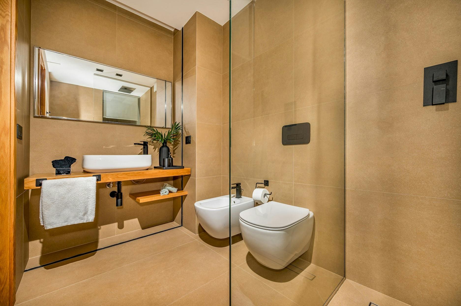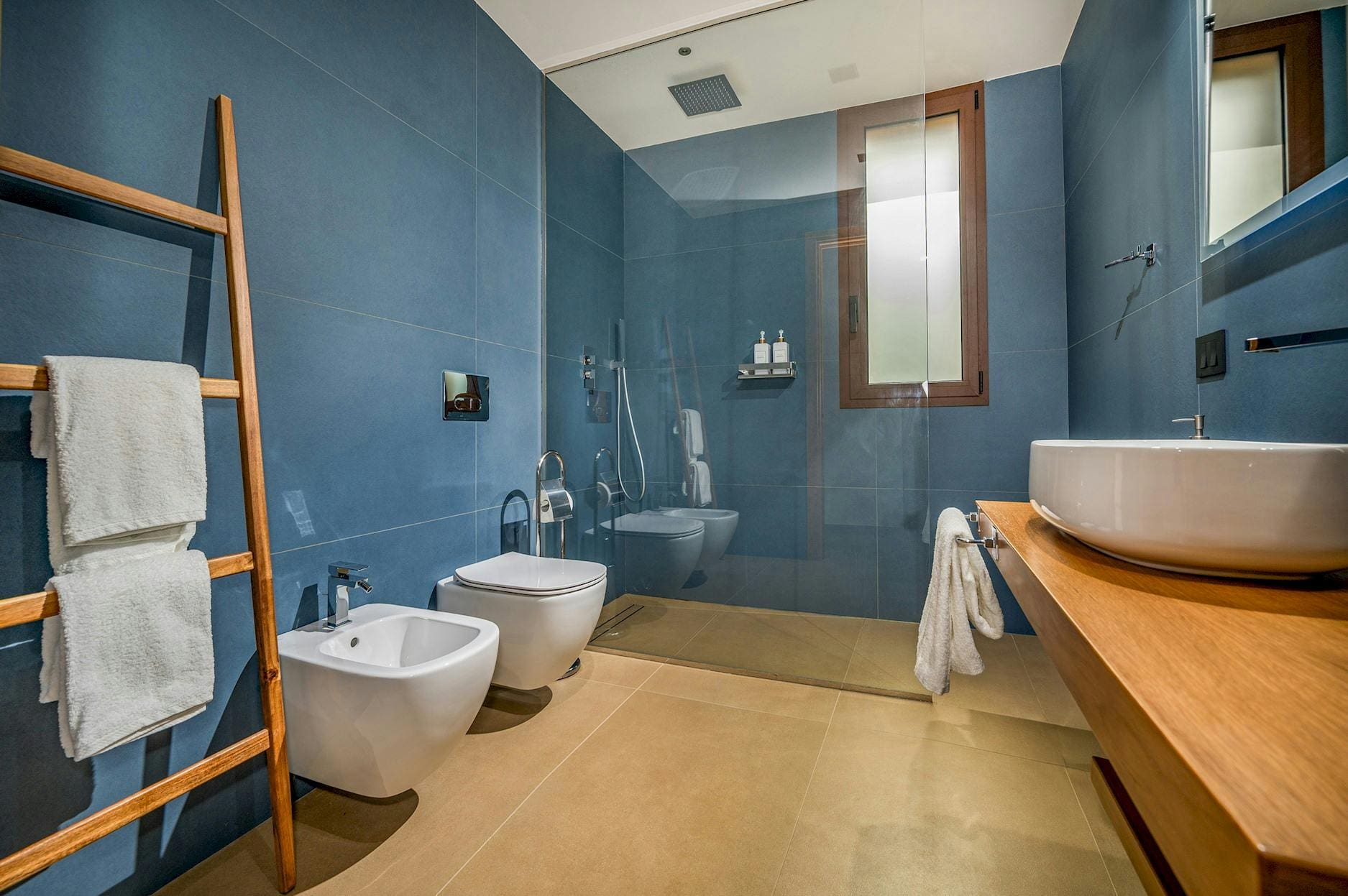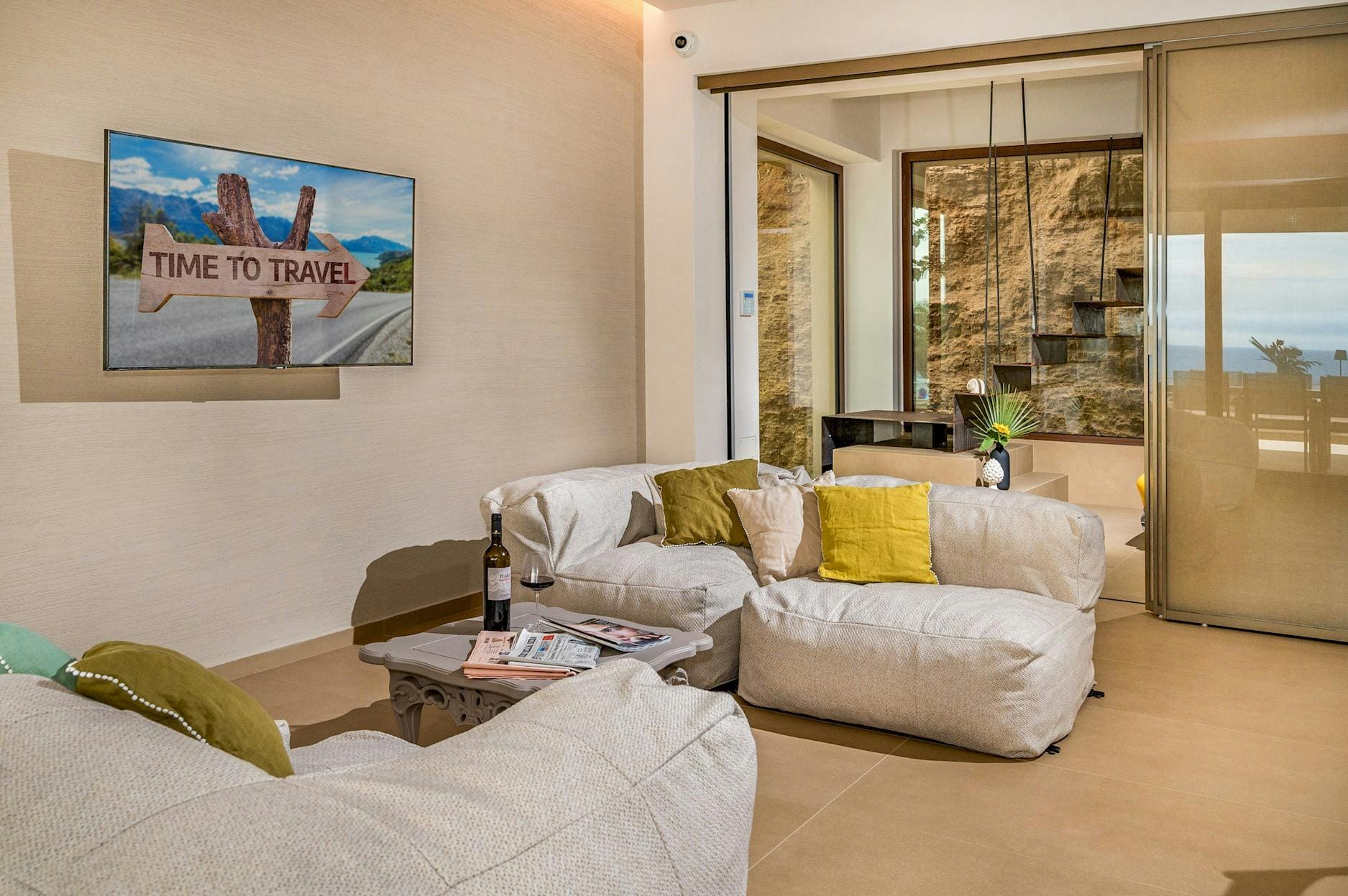 The interior of this luxury villa in Sicily is a masterpiece of modern design combined with traditional Sicilian elements. Each of the five spacious bedrooms includes an en-suite bathroom, ensuring privacy and comfort for all guests. The open-plan living area is perfect for socializing, while the well-equipped kitchen allows for gourmet dining experiences. High-speed internet and dedicated workspaces make it suitable for remote working.