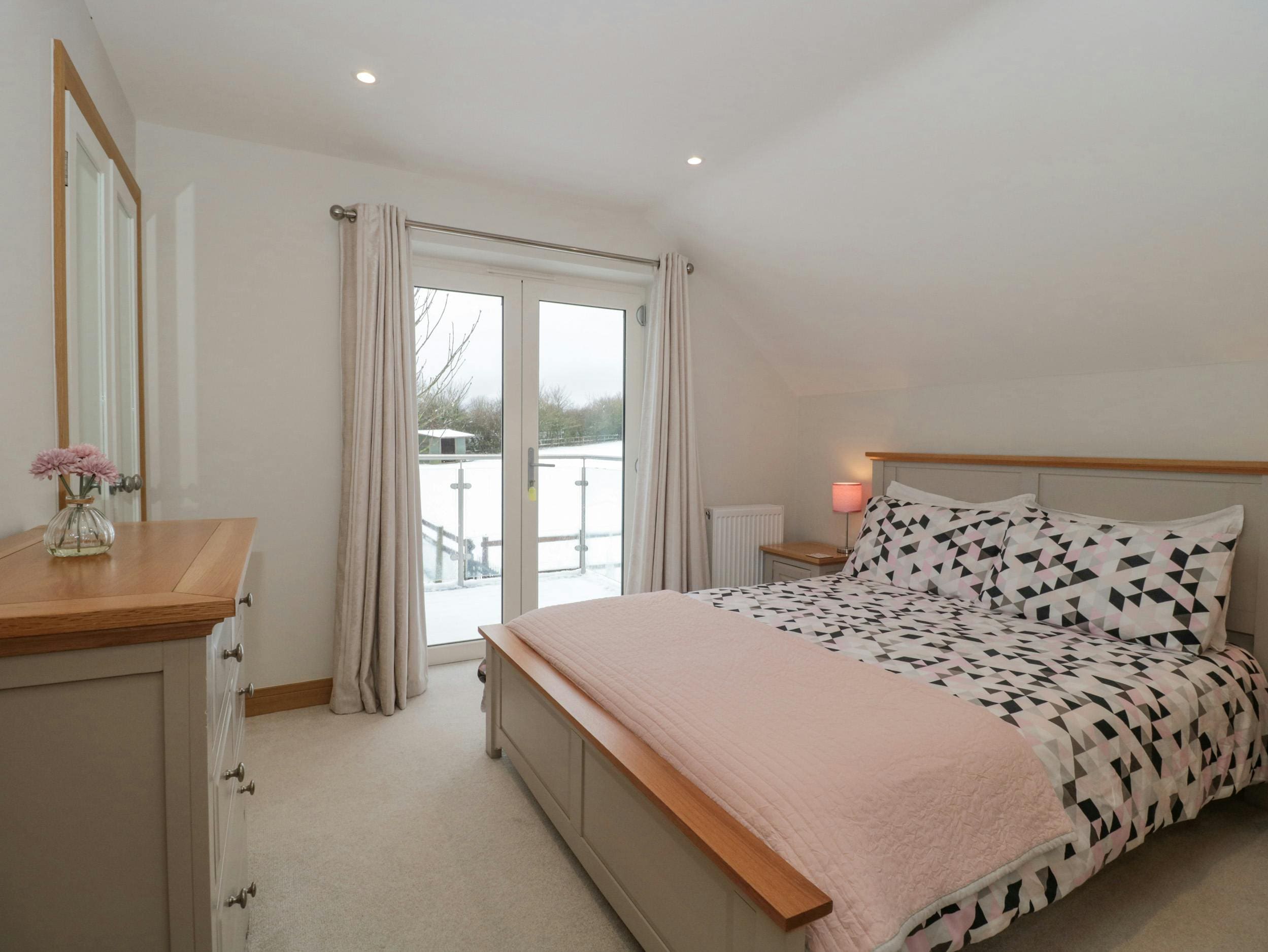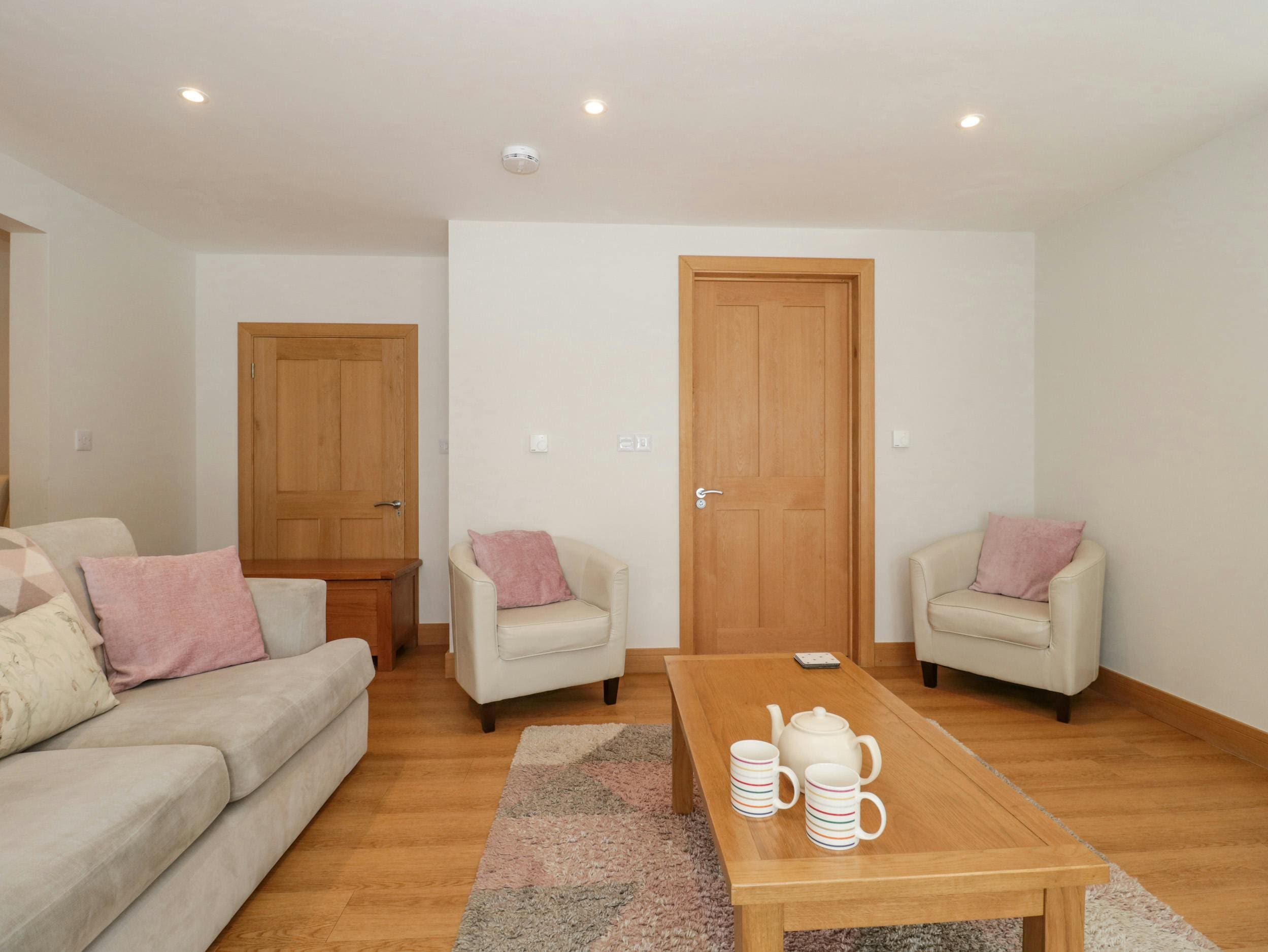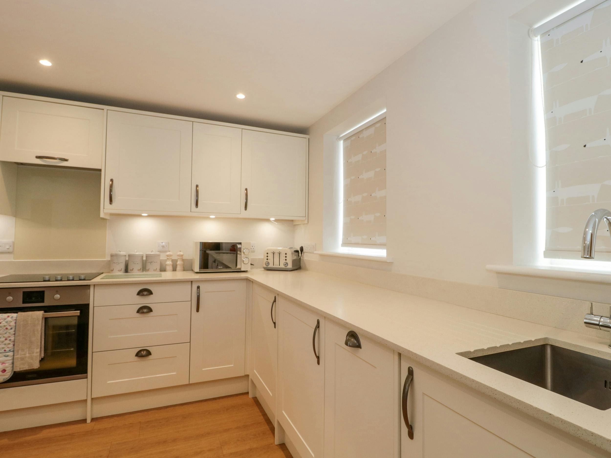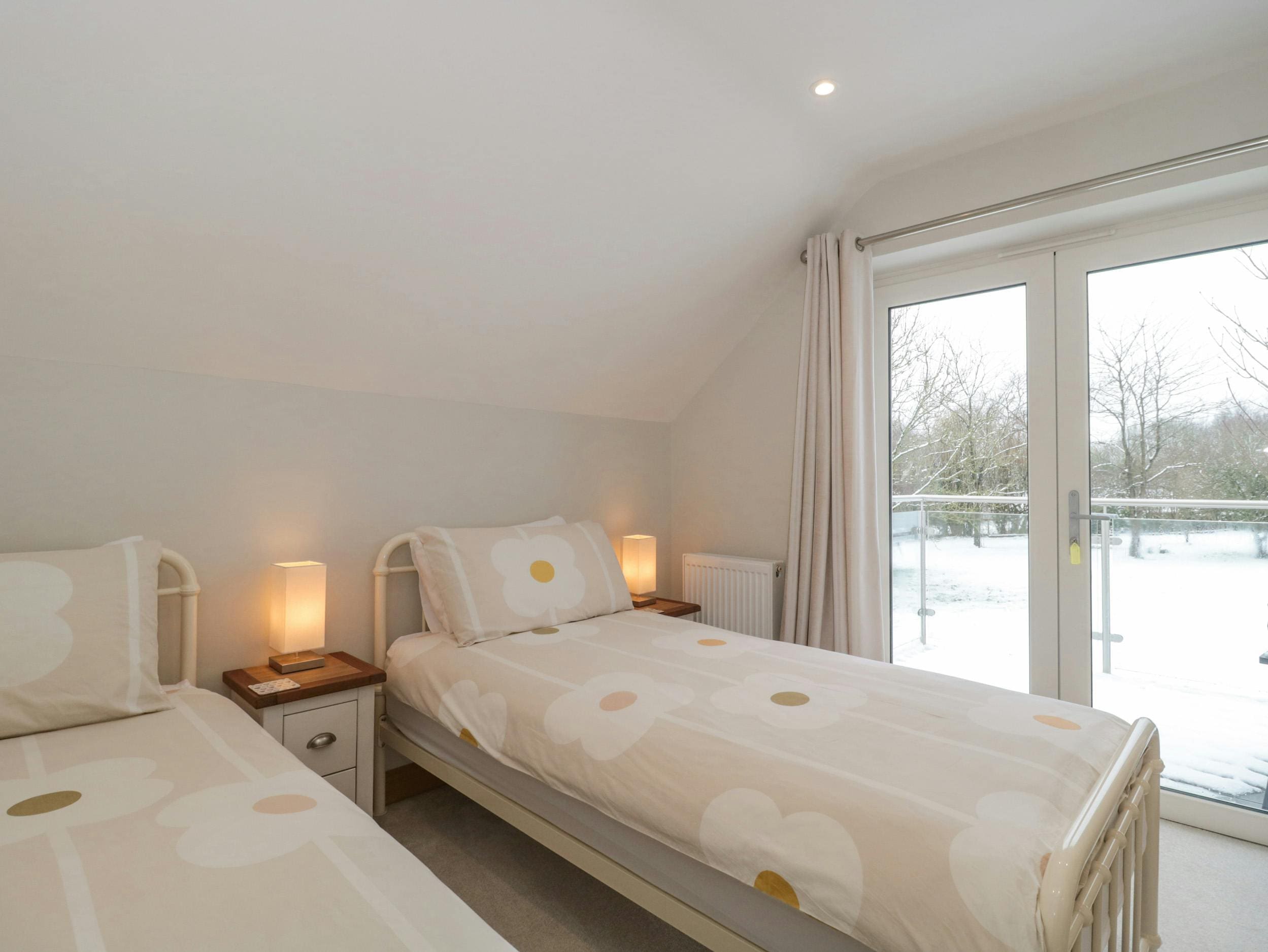 The house accommodates up to six guests, though we recommend a maximum of four for optimal comfort. It offers two bedrooms and three bathrooms, with a sofa bed available for additional guests. The property welcomes two small, well-behaved dogs. For those requiring accessibility features, disabled access may be available via a threshold ramp. Explore our luxury villa rentals in United Kingdom for more properties.