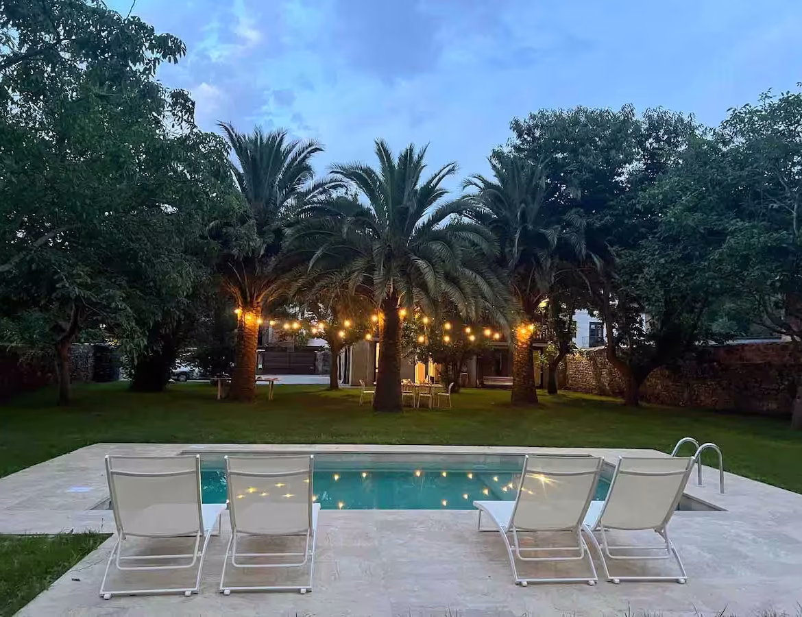 Step outside and discover a sanctuary of nature and calm: a private 2,000-square-metre wooded garden, beautifully landscaped with ancient trees, manicured lawns, and fragrant flowerbeds. At its heart lies the jewel of the property: a heated outdoor swimming pool, open year-round and flanked by sun loungers, parasols, and a designer chill-out area. Whether you’re taking a morning dip or enjoying a poolside cocktail beneath the stars, this is luxury Spanish villa living at its finest.