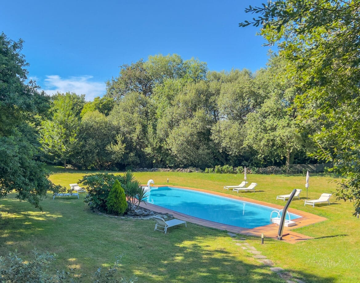 Step outside into the expansive grounds where a private pool awaits, inviting guests to cool off under the sun or enjoy an evening swim. Surrounding the pool are manicured gardens, perfect for leisurely strolls, yoga sessions, or simply basking in the natural beauty that Galicia has to offer. In addition, the villa boasts its own chapel, a dovecote, a restored granite granary, and even its own mountain spring.