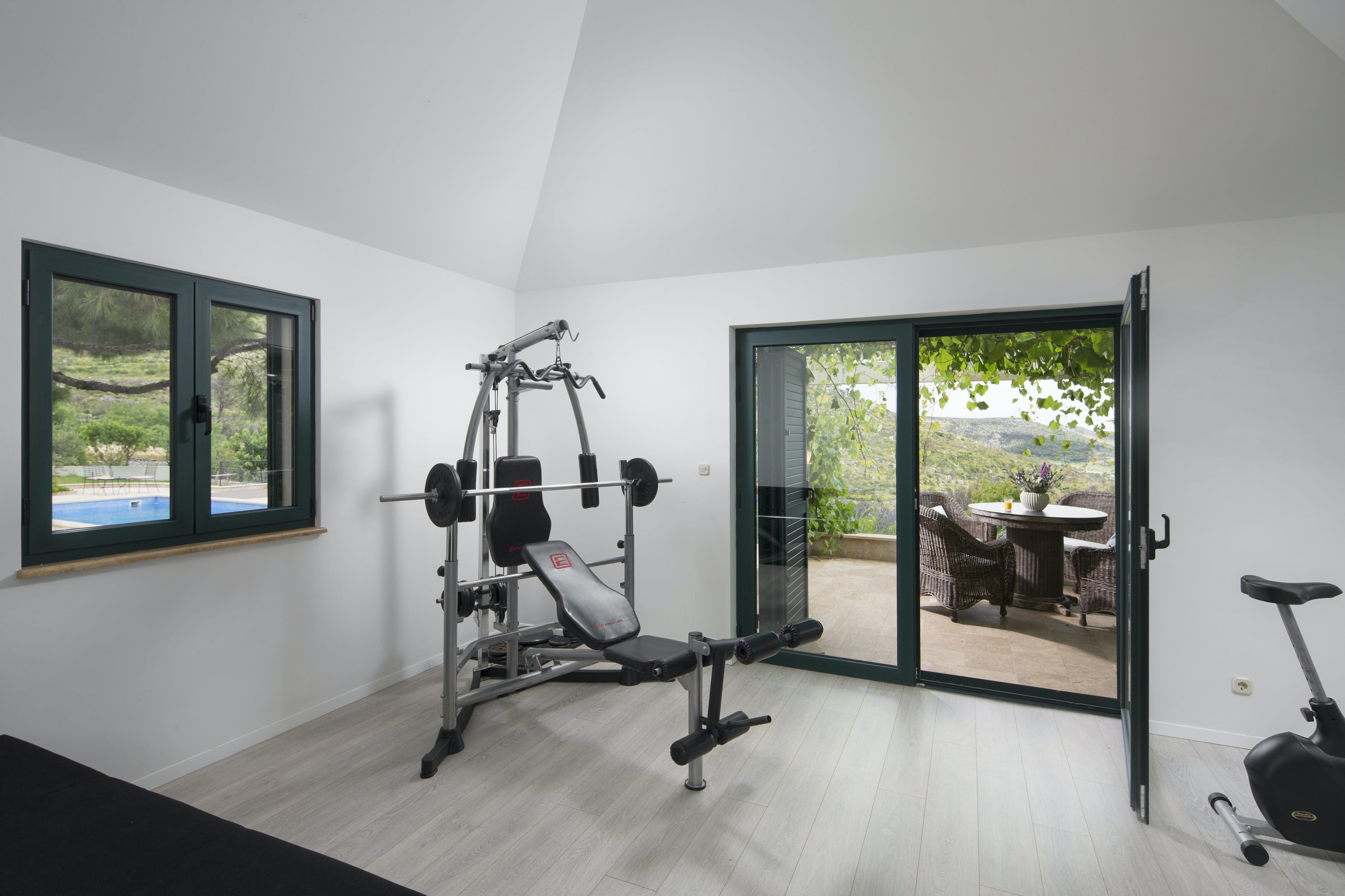 Step outside to discover a private heated swimming pool, surrounded by terraces with panoramic seaviews. The summer kitchen is perfect for alfresco dining under the Croatian sun, while shaded areas beneath olive, almond, and oak trees provide a cool respite. The villa’s elevated position in the Kozjak mountains offers enticing views of the bay of Kaštela, creating an idyllic backdrop for your stay.