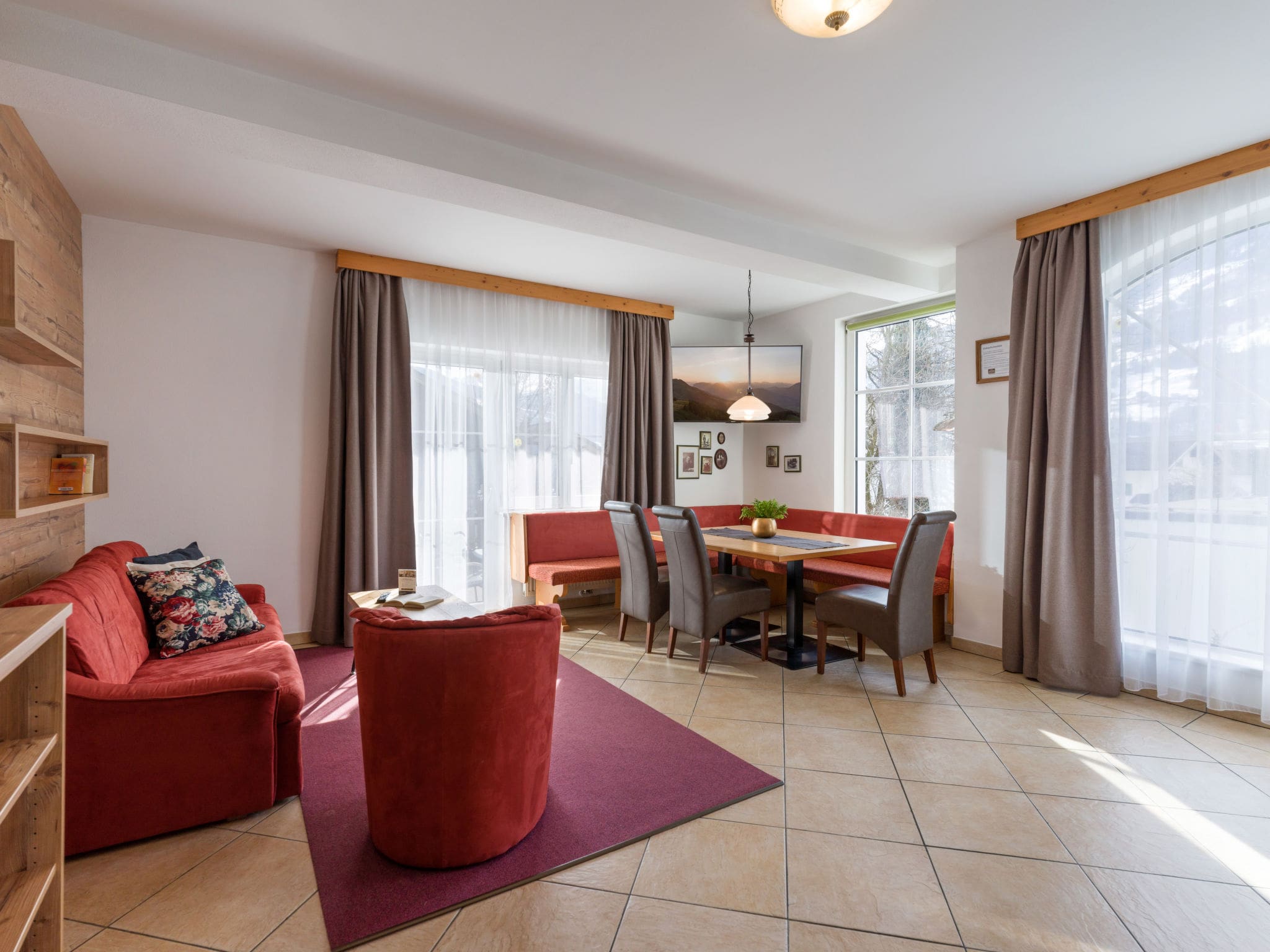 This Alpine apartment suits active travelers seeking both winter sports adventure and summer mountain activities. The location appeals to skiing enthusiasts with direct access to two major ski areas, while summer visitors appreciate hiking, cycling, and lake activities. The combination of modern amenities, mountain views, and authentic Alpine atmosphere makes it ideal for those wanting luxury comfort in a traditional Tyrolean setting. Groups requiring flexible accommodation and families seeking shared facilities will find this property particularly appealing.