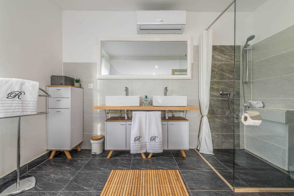 The living spaces of the villa are on the ground floor offering superior interior design, sumptuous contemporary furnishings and superb comfort. The chef in your group will be delighted by the modern kitchen and its appliances. The living spaces open directly to your fabulous terrace.