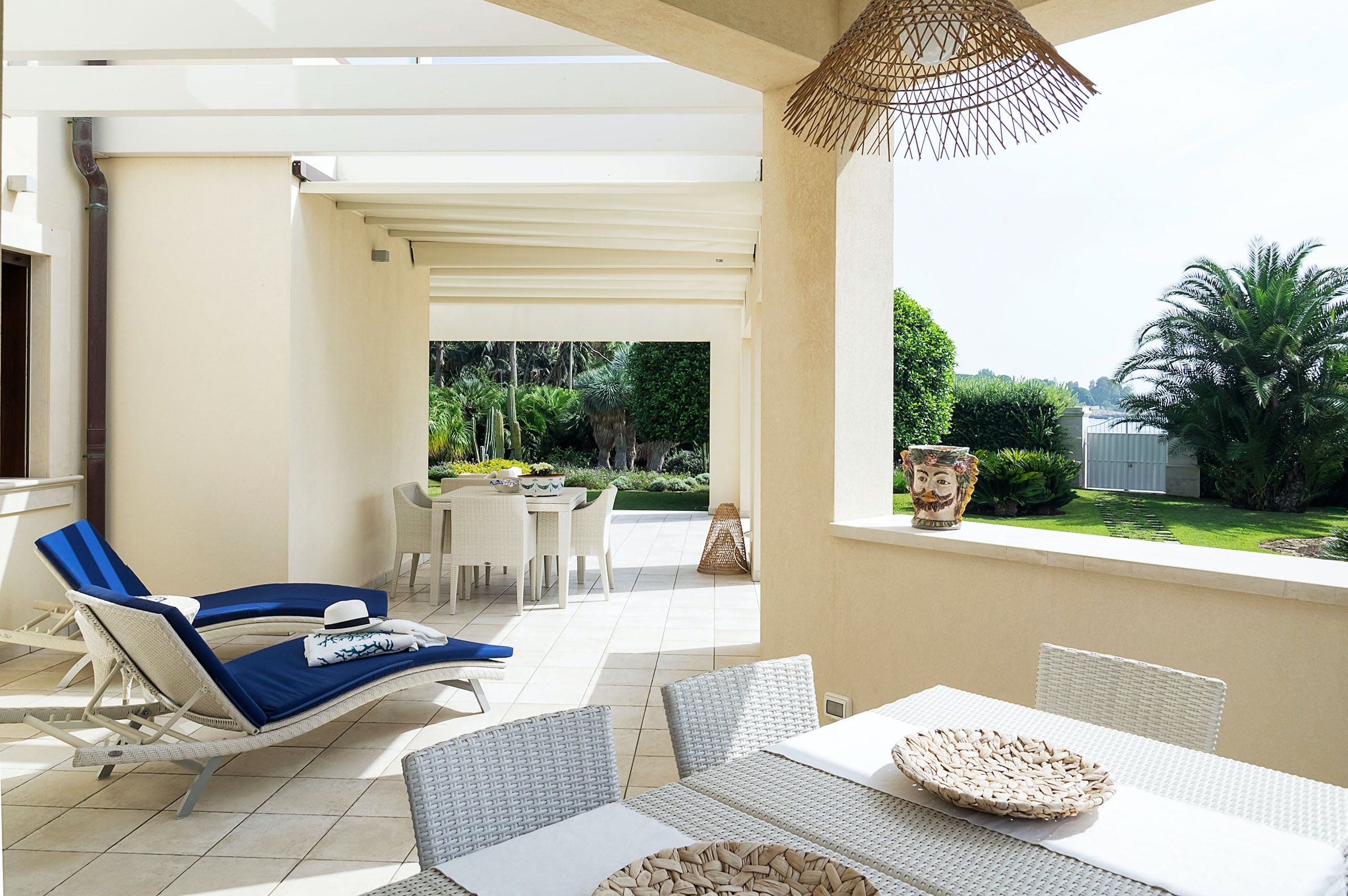 The villa’s outdoor spaces are nothing short of spectacular. Enjoy your morning coffee on the terrace as you gaze out over the azure sea, or unwind in the manicured gardens that lead directly to the beach. With ample seating and dining areas, as well as sun loungers perfectly positioned for soaking up the Sicilian sun, outdoor living is truly a delight here.