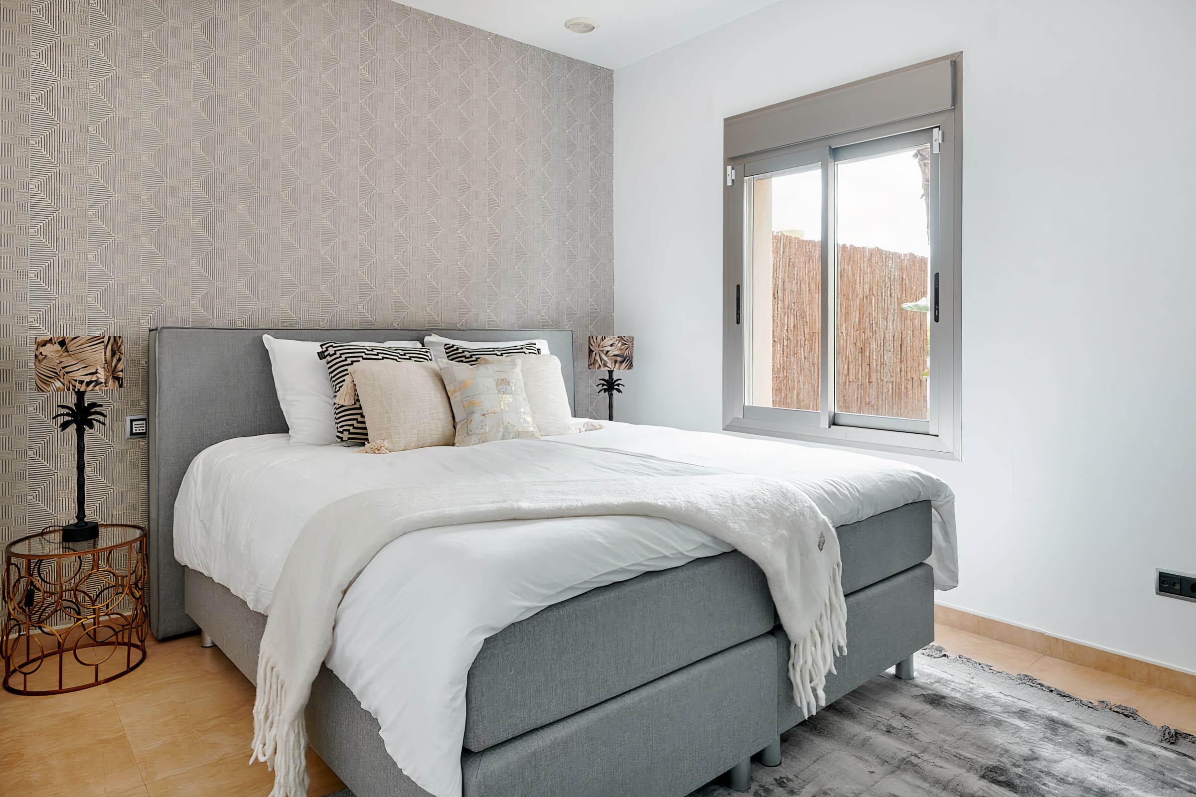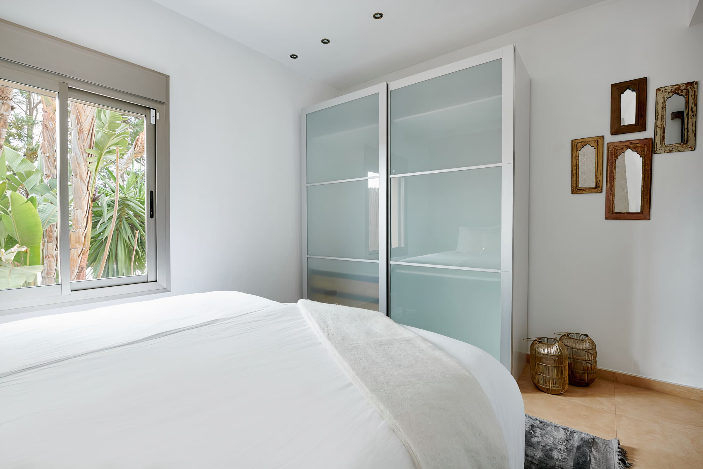 The apartment can accommodate up to eight guests comfortably, with four bedrooms and seven bathrooms. It includes on-site free parking, and a car rental is recommended for exploring the island. Enjoy five hours of daily cleaning six days a week. The private pool is heated, ensuring year-round enjoyment. For more options, browse our luxury villa rentals in Spain.